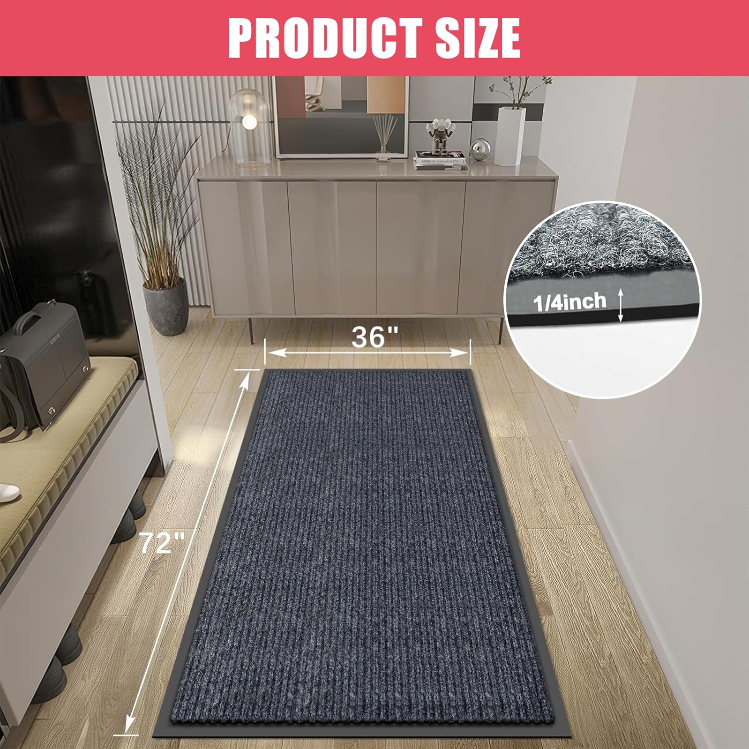 Kuyal Front Door Mat, 3'x6' Indoor Outdoor Entrance Mat, Commercial Floor Mats Inside Outside Entrance, Heavy Duty Durable Welcome Mats, Rubber Backing Non Slip Outdoor Mats for Entryway,Dark Gray