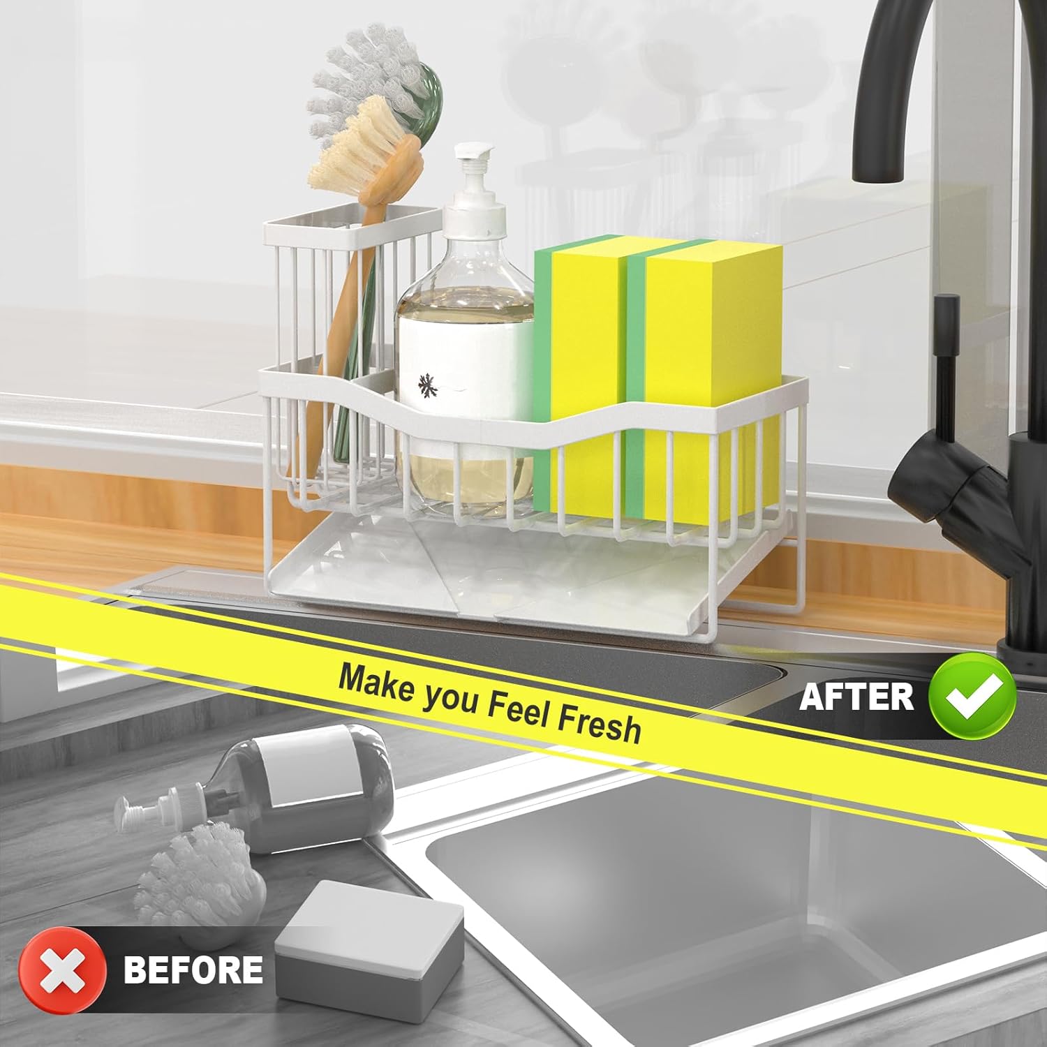 - ăSatisfactory Guaranteedă Do Not Hesitate! Click âAdd To Cartâ to Level Up Your Kitchen Organization! Kitchen sink caddies can be used as soon as they are received, do not require installation, and are widely used in bathrooms or counters, making them a desirable gift. If you have any questions during this process, please contact us in time and we will solve it for you in time.