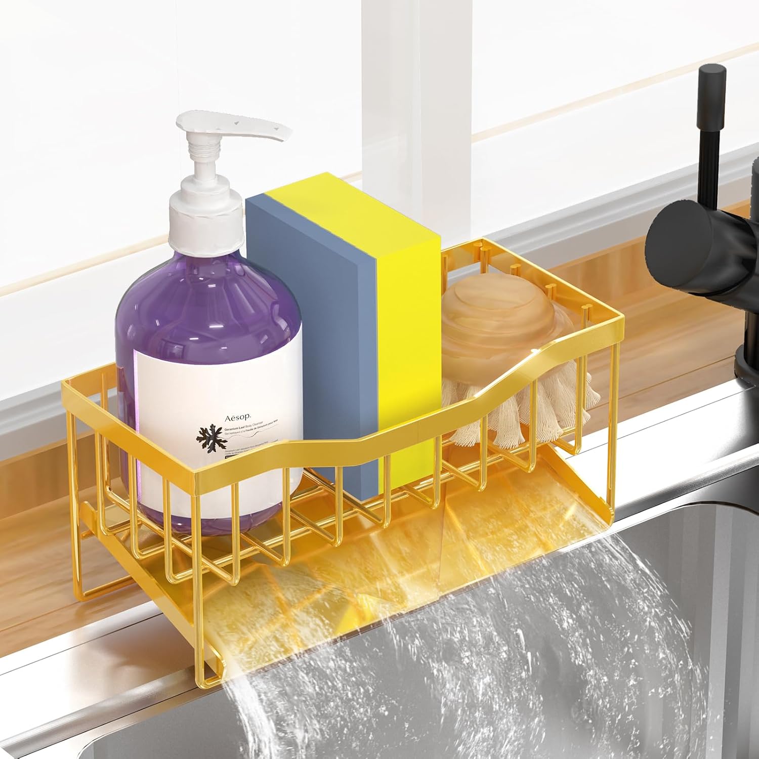 - 『Innovative Self-Draining Tray Design』:Say goodbye to the tedious and disorganized sink countertops, our kitchen sink caddy has a clever self-draining tray that lets you effortlessly drain water into the sink, helping your cleaning tools dry faster and stay clean.