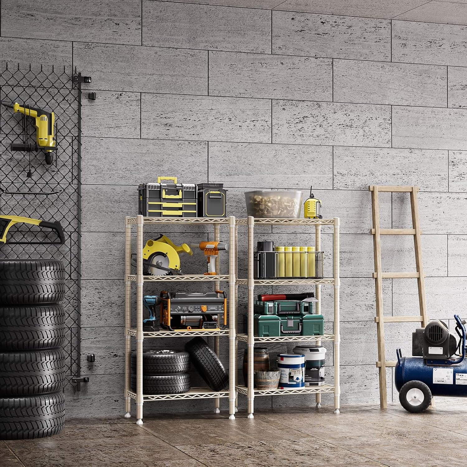 1000 lbs 4-Shelf Standing Storage Shelves Heavy Duty Metal Shelving Unit Adjustable Wire Rack for Office Garage Kitchen, Light Tan 11.8 D x 23.6" W x 47.5" H