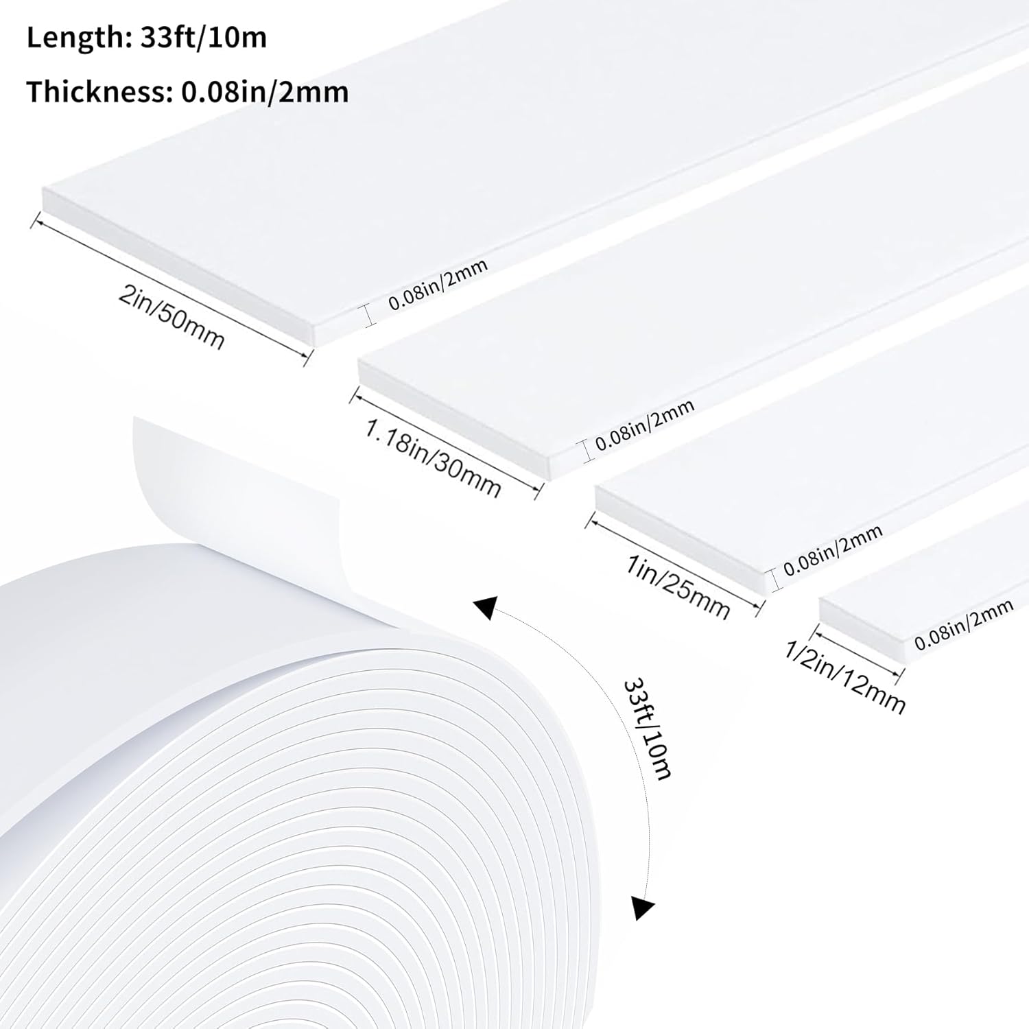 - Product Size:1 roll of 1/2" W x 1/13" T x 33' L foam tape
