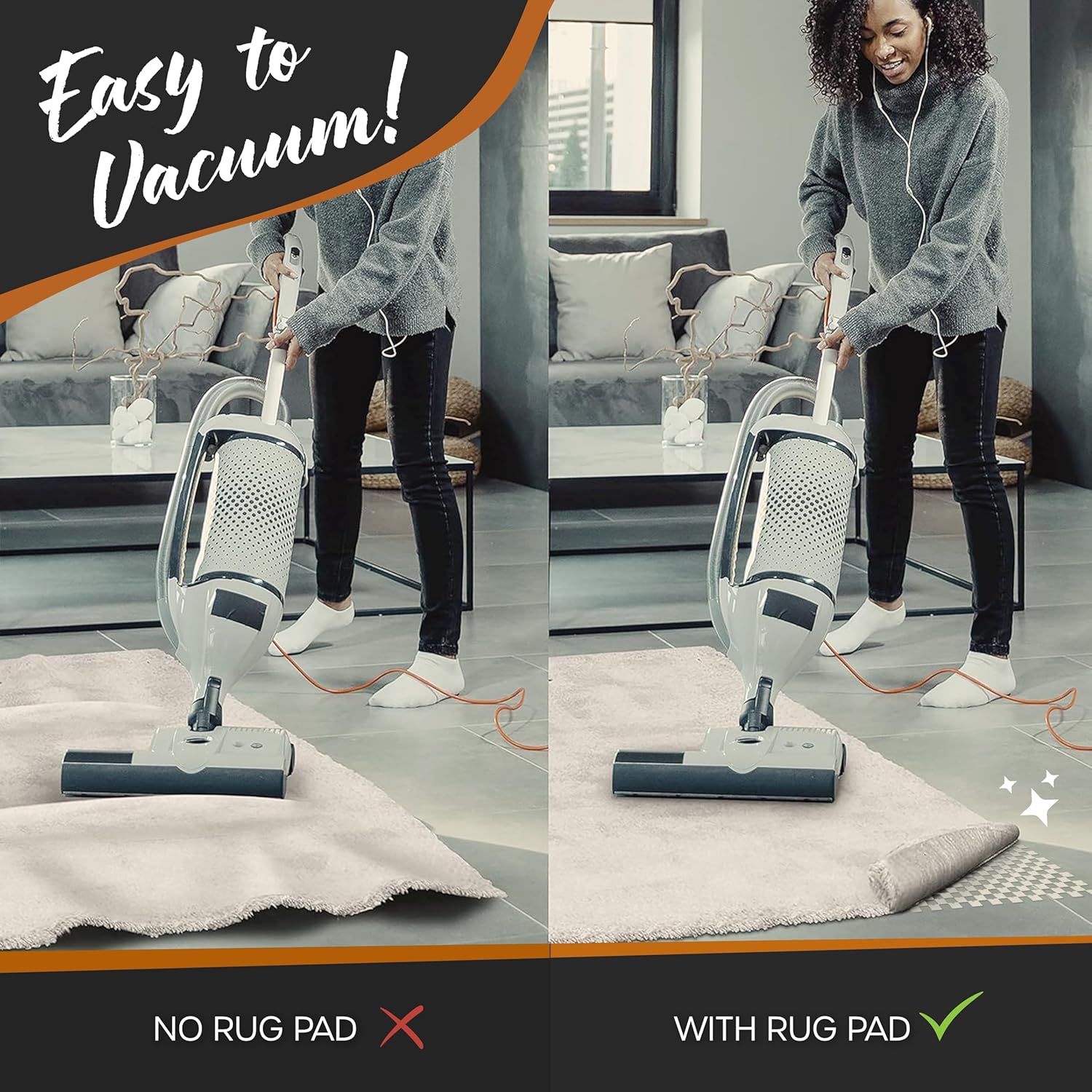 - Quick Setup, Easy Clean: Stop your rugs from moving around with our easy-install under carpet padding roll . Simply lift your runner or carpet, lay the under rug padding down on the floor, flatten out any bumps & then place your rug or carpet again on top. This carpet protector runner rug pad will hold your rugs firmly—no more slipping or sliding! Cleaning is a breeze with our rug holders non slip grip for carpet —just vacuum or wipe with a damp cloth & the runner pad ready for reuse!