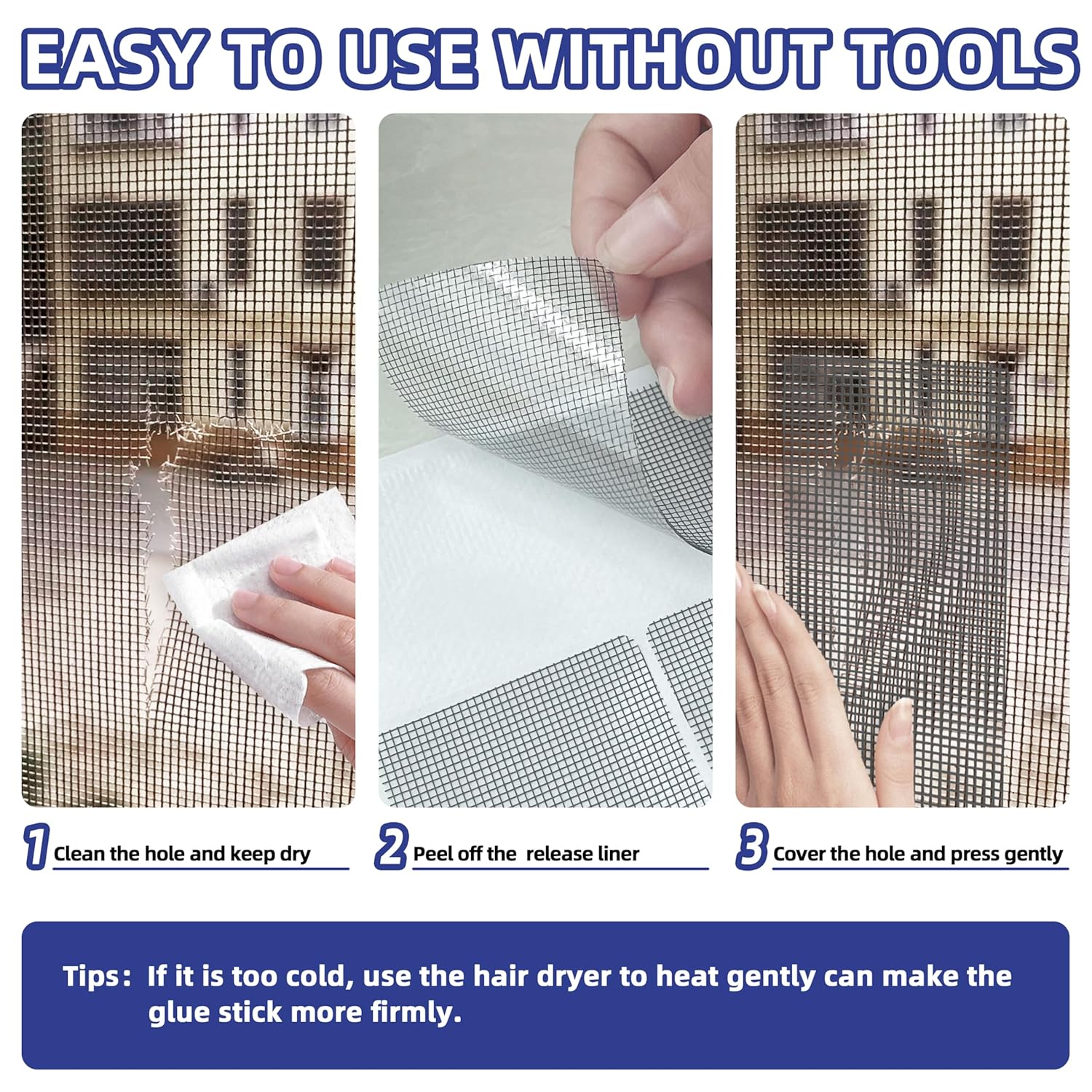 - 【 HIGH-QUALITY MATERIALS 】Our window screen repair tape is made with eco-friendly adhesive and high-quality fibers. Suitable for both indoor and outdoor use, in high or low temperatures. It can repair not only window screens but also screen doors, tents, pool screens, and other mesh tears or holes