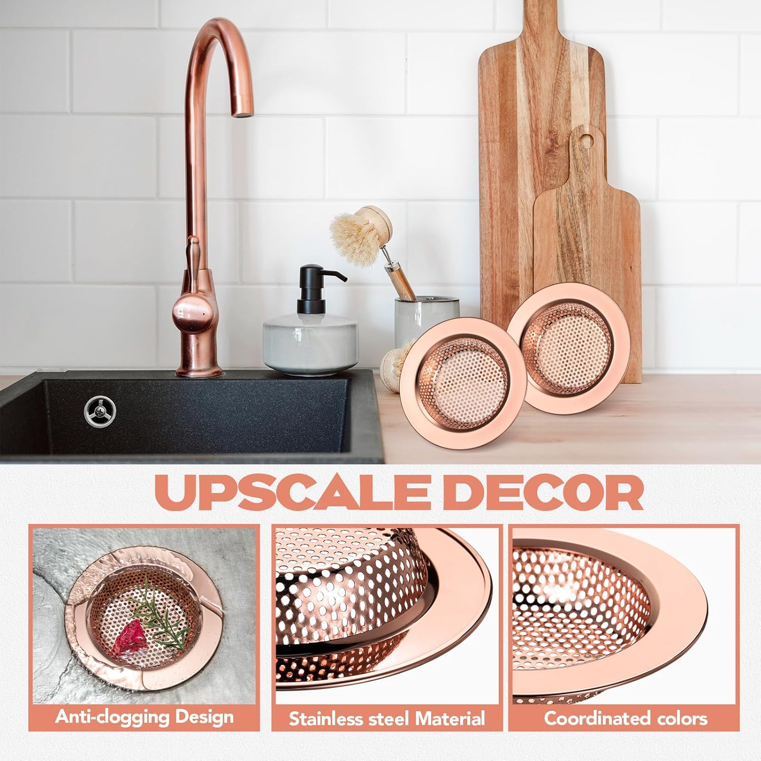 Retisee 2 Pcs Sink Strainer Stainless Steel Kitchen Sink Drain Strainer Basket Cover Mesh Hair Food Catcher, Large Wide Rim of 4.4 Diameter(Rose Gold)