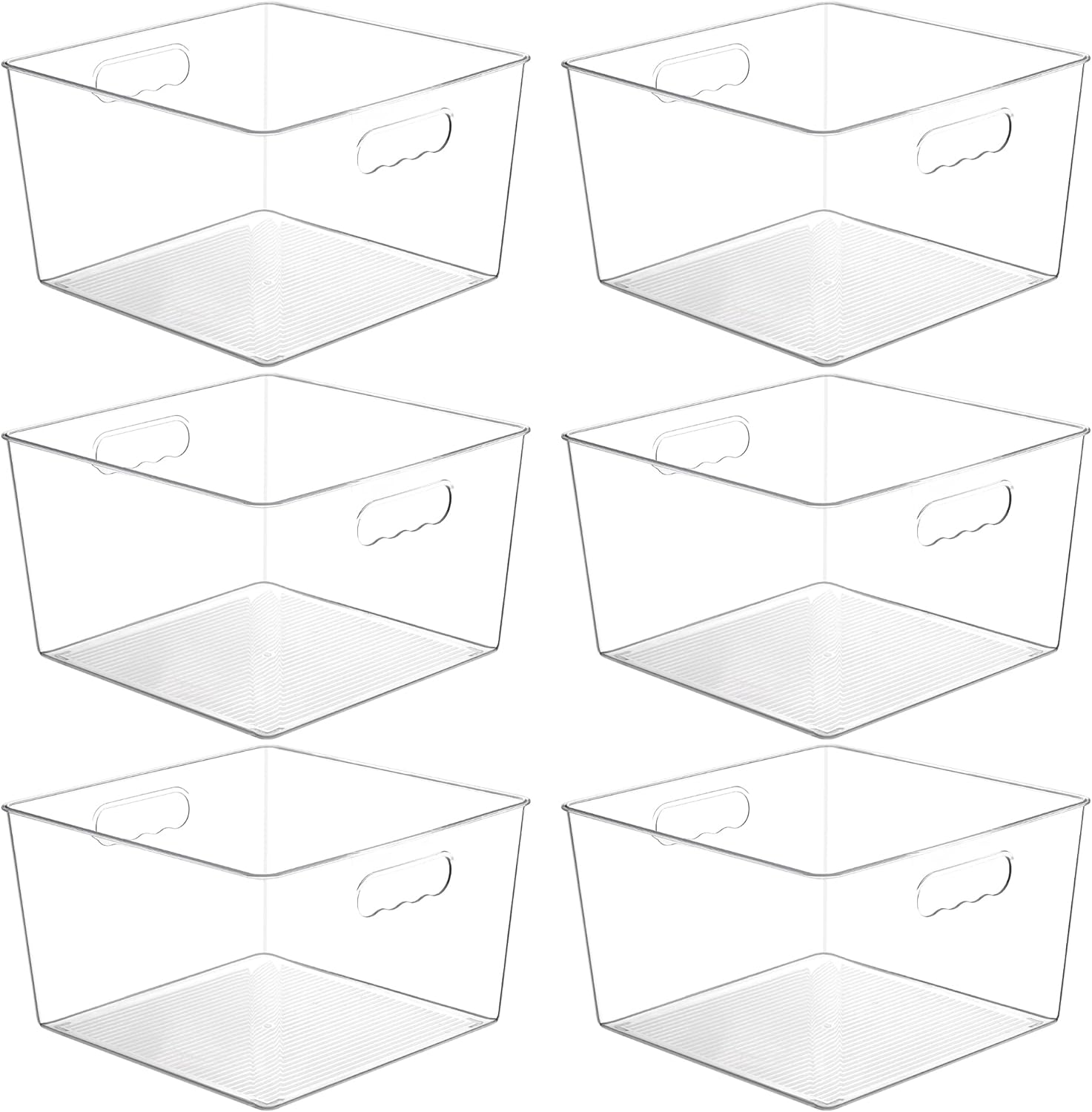 Vtopmart 6 Pack Extra Large Clear Plastic Storage Bins,11x11 Cube Acrylic Organizer Square Containers with Handle for Pantry,Closet,LaundryRoom,Kitchen,Bathroom,UnderSink Organization