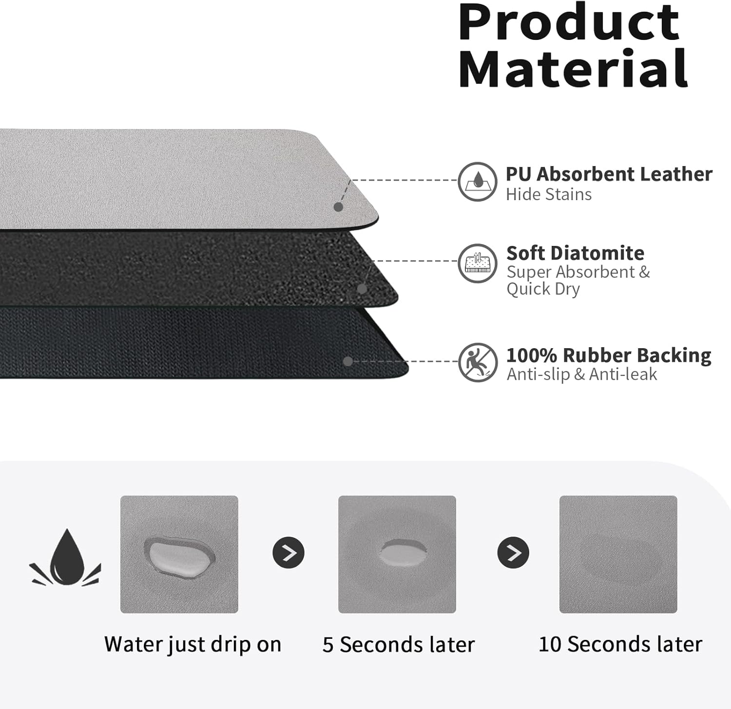 - ✔️【Quick water absorption & Drying】The microfiber tableware dish drying mat is made of high-absorbent nanomaterials. The drying mat is soft and absorbent, which can dry quickly and hide stains well. In addition, the dish mat is thick enough to better protect countertops, tableware and glassware from damage and pollution.