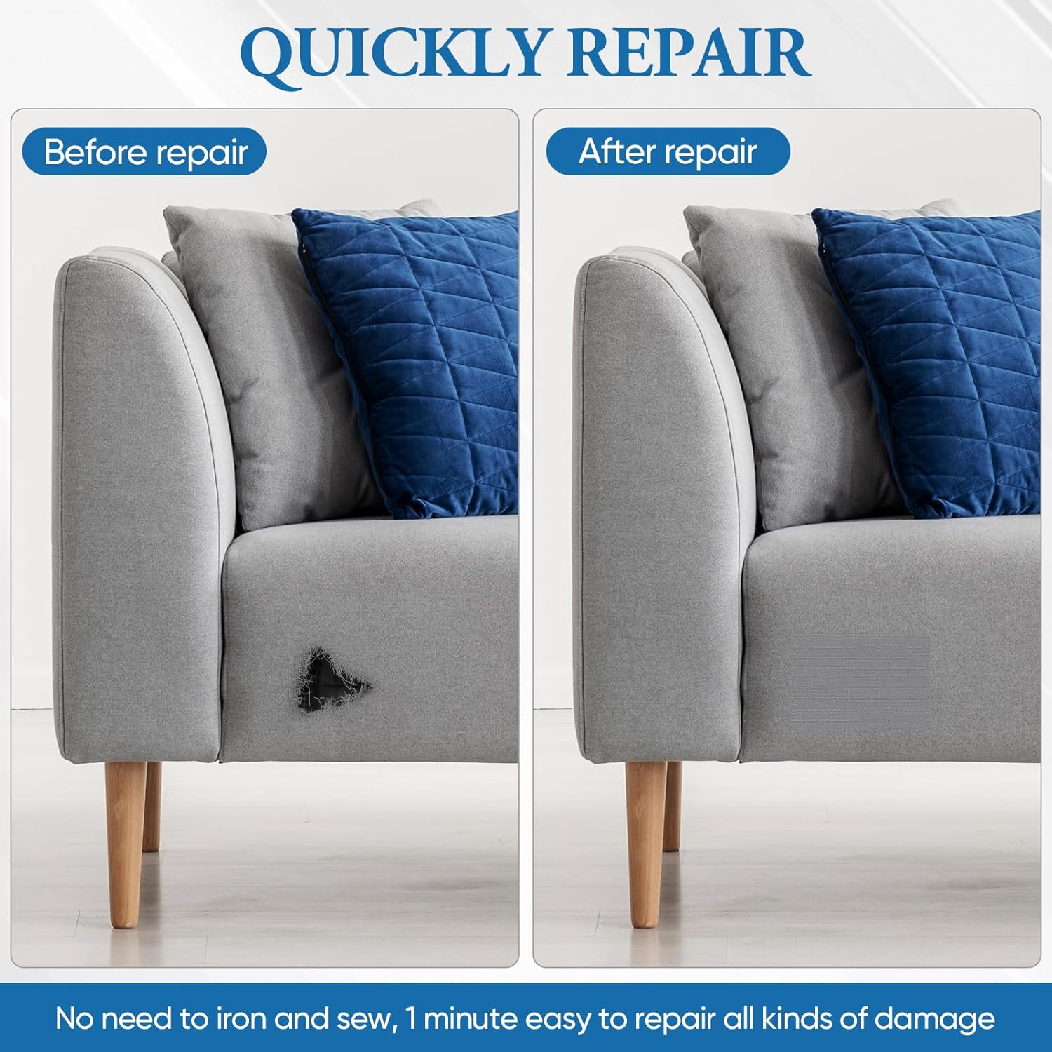 - WIDELY APPLIED:Couch patch is a versatile repair material that can easily fix scratches, holes, cracks and other damages on all kinds of outdoor gear. Whether it's a tent, parasol, awning, canvas or sofa, this canvas patch will come in handy. No need to buy new furniture or outdoor items, saving you money.