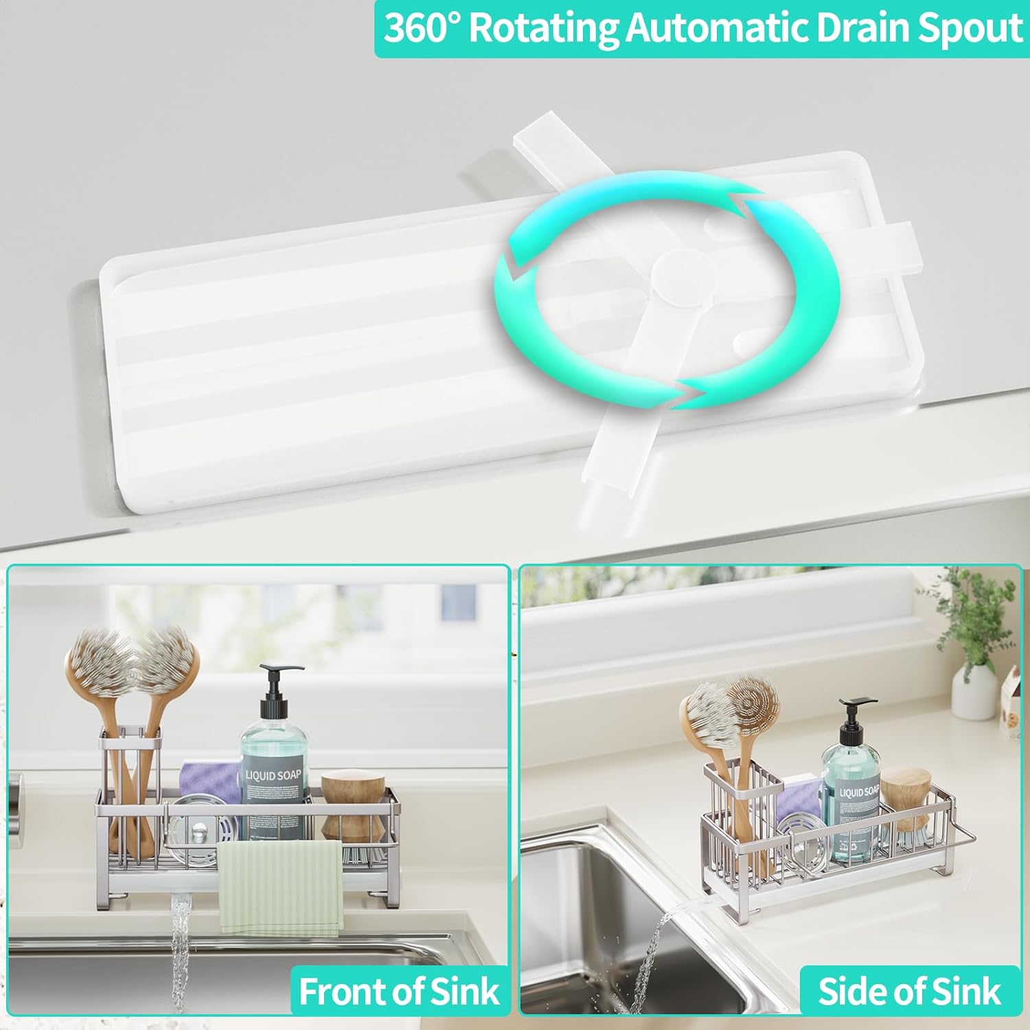 - [360Β° Rotating Drainage]: Tired of waterlogged counters? The 360Β° rotating drainage pipe on our sink caddy ensures your kitchen stays dry and clean, effortlessly directing water into the sink. The drain pipe is removable, so you can remove it for cleaning