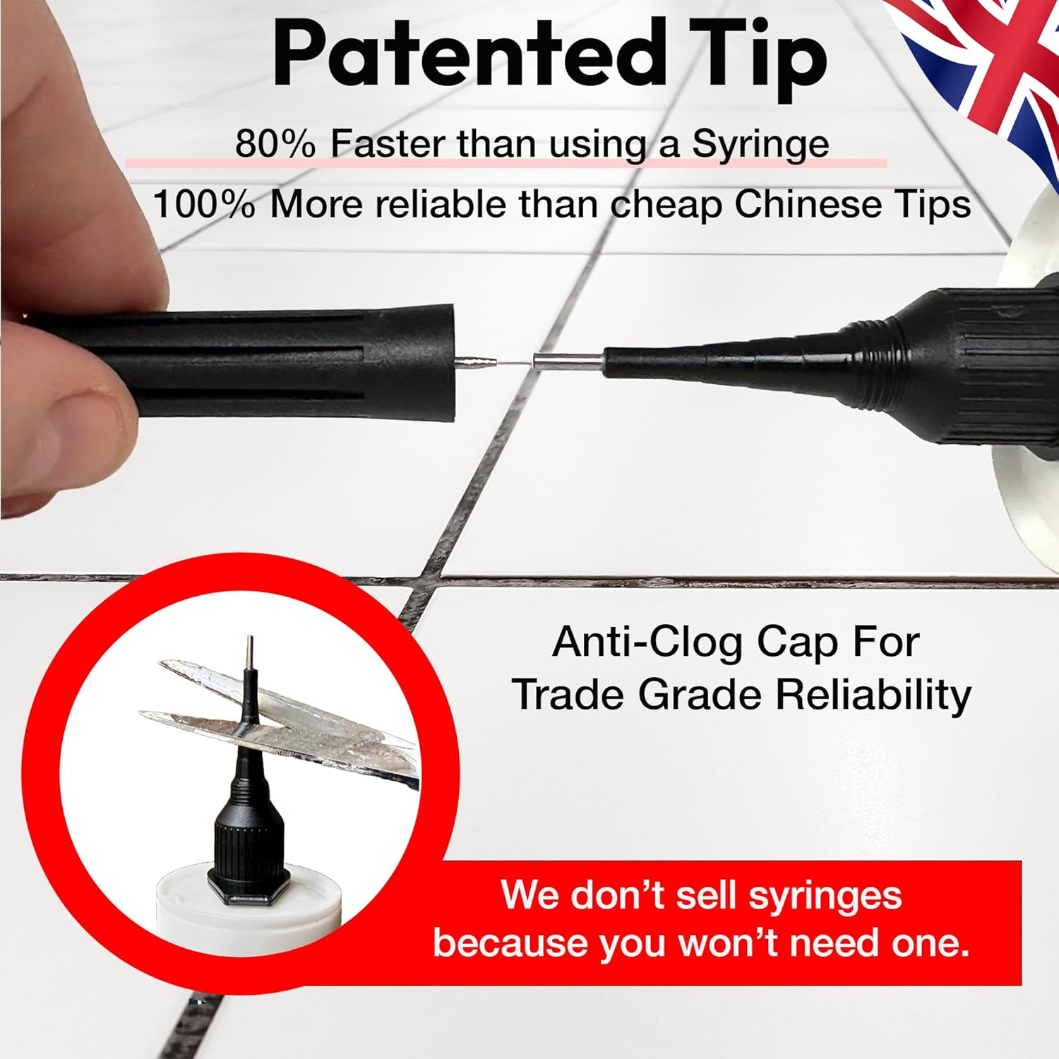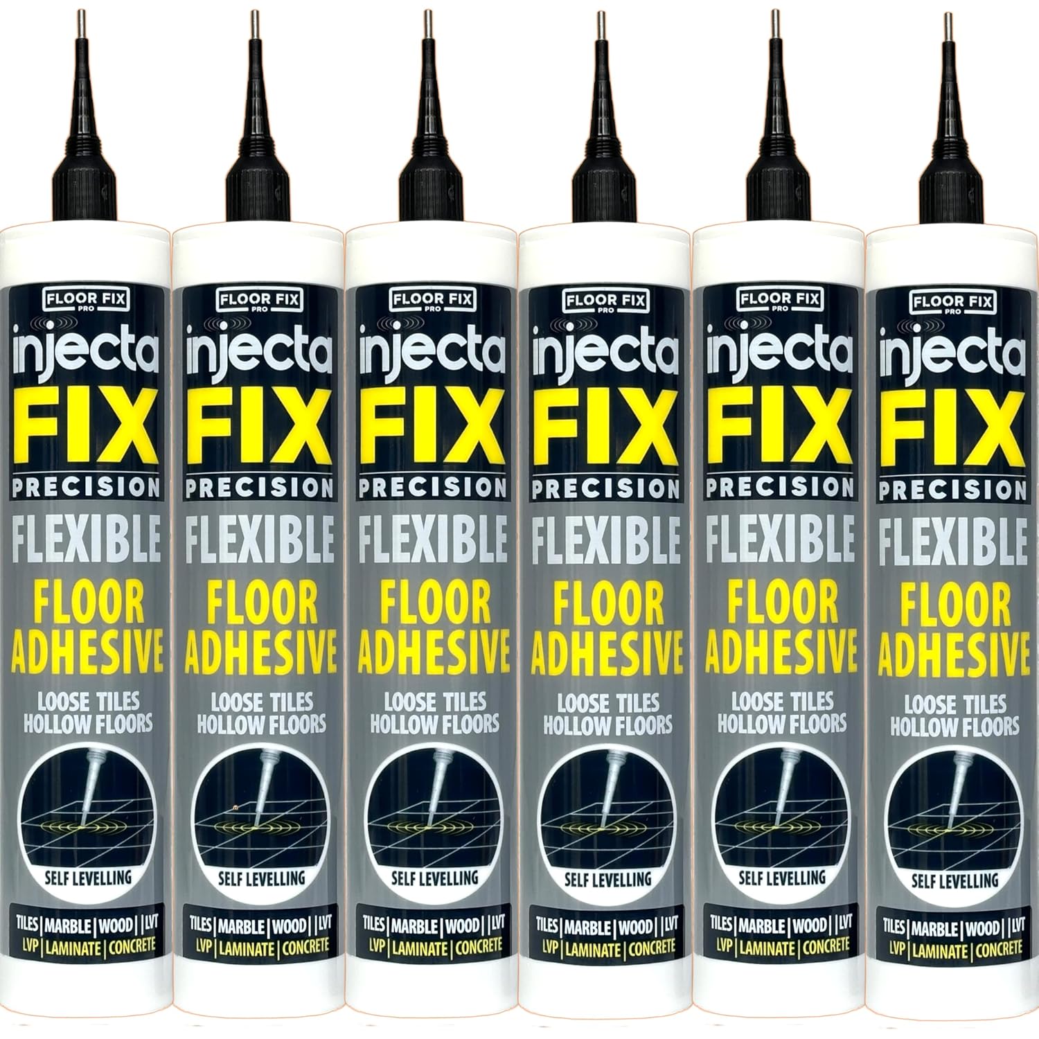 Precision 300ml from Floor-Fix Pro - Fix Loose Tiles - for Loose & Hollow Tiles, Wood, LVT & Laminate - Includes 1.9mm Syringe Tip - Adjustable to 6mm + Anti-Clog Performance (Pack of 6)