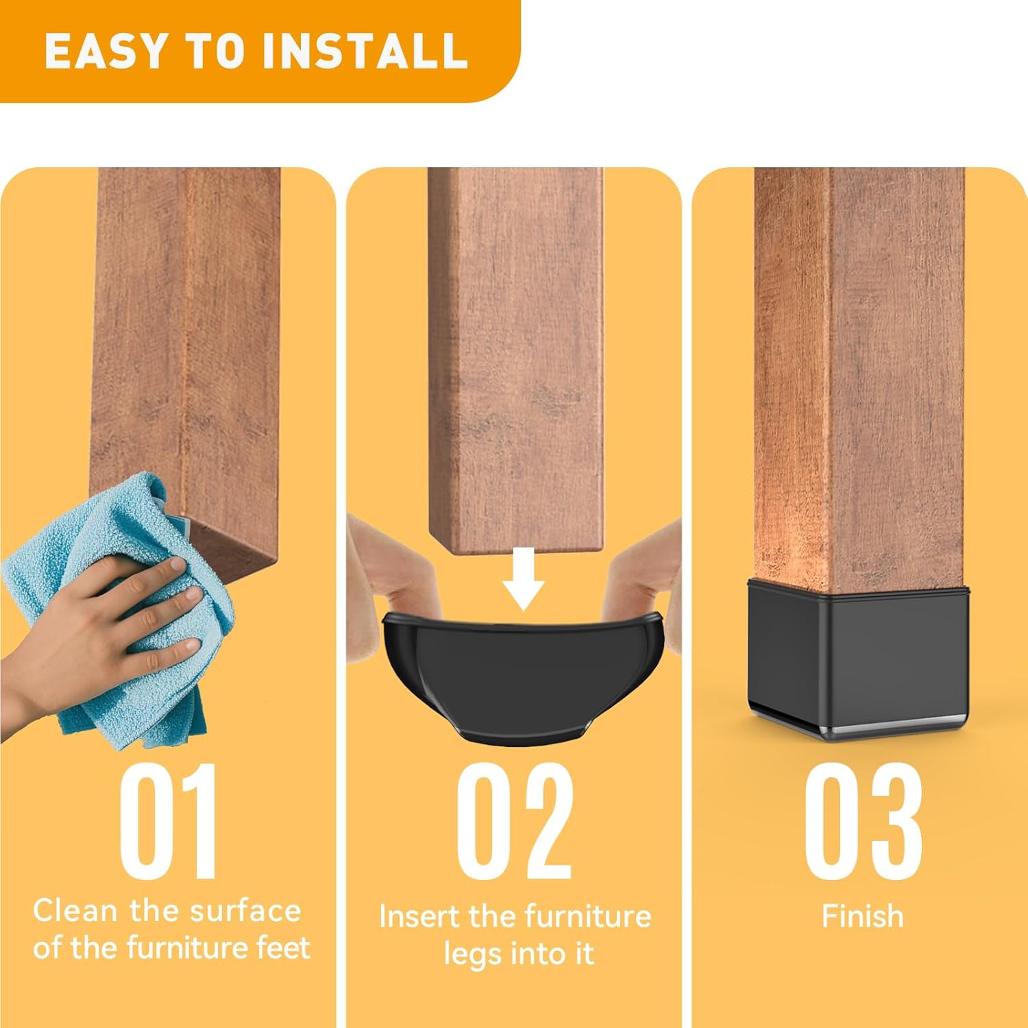 - 【UNIVERSAL SHAPE AND SIZE】:Furniture Sliders has High elasticity, free to pull.No deformation and no discolorratio.Chair Leg Sliders are good for square furniture legs 1.2- 1.6"(30-40mm).with perimeter of 4.72-6.3" (120-160mm).