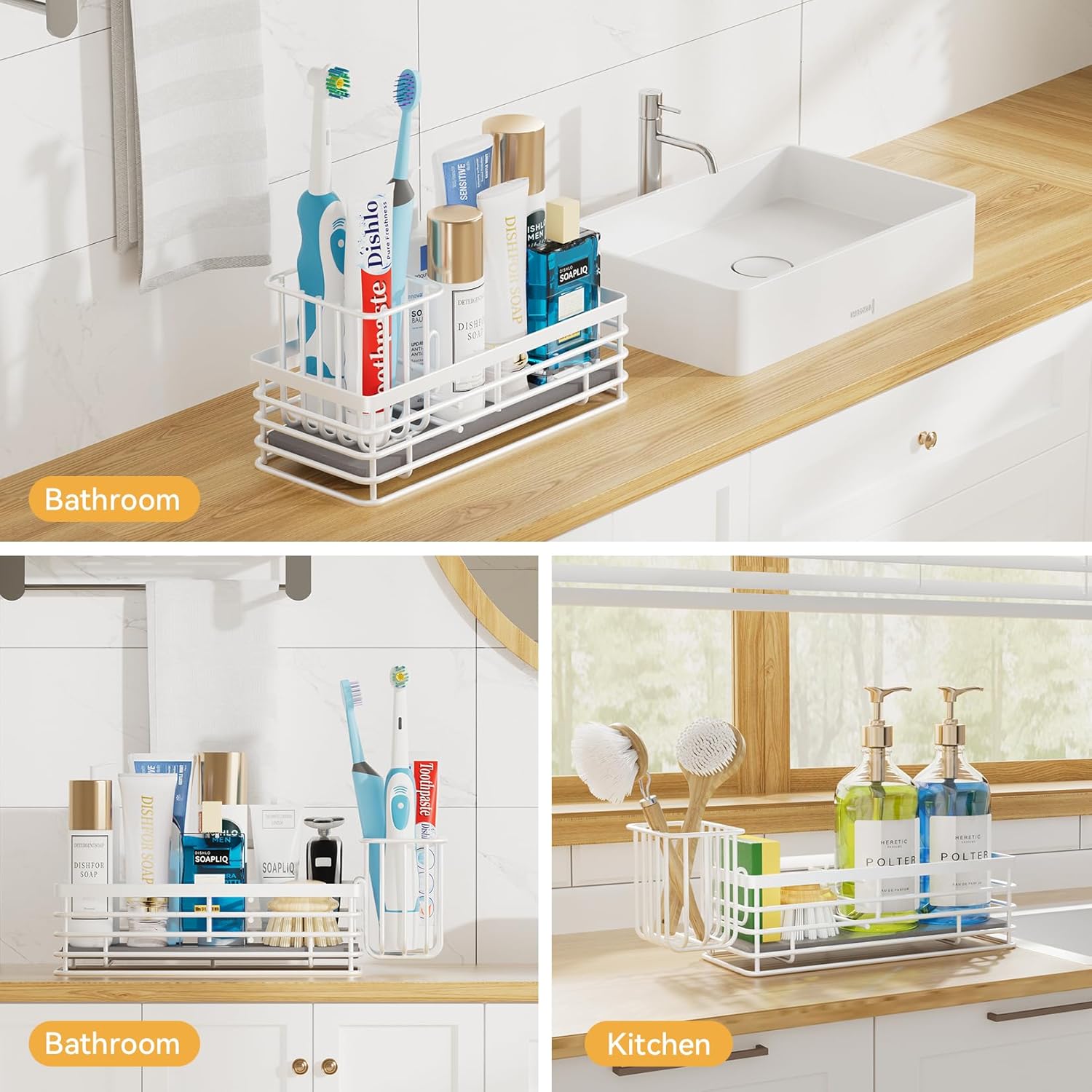 - ăStability & Convenience Engineeredă: The sink caddy sponge holder features a non-slip base that ensures stability during use, preventing sliding or tipping when wet