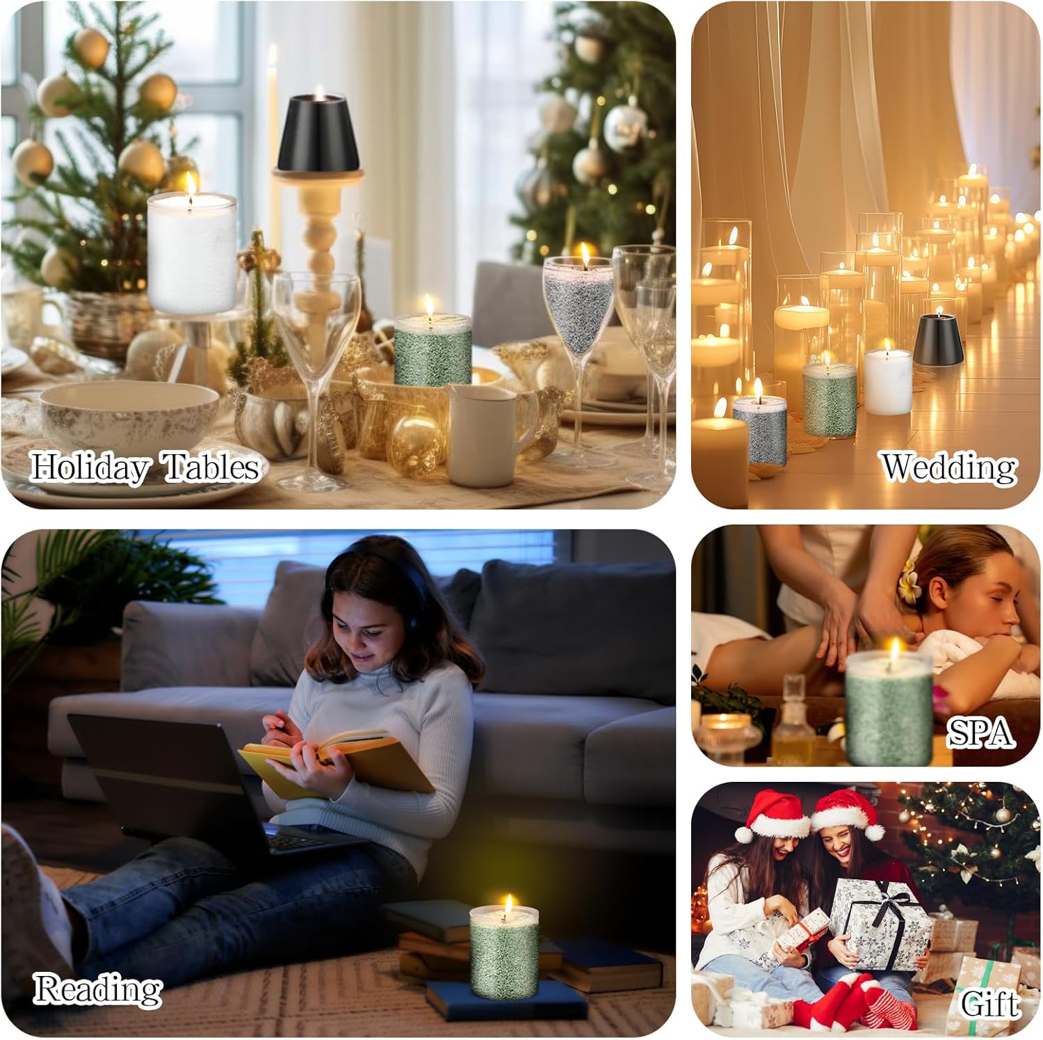 - Atmosphere Maker: our sand candles with wicks is suitable for most occasions due to its crystallization effect, such as reading, SPA, wedding, Christmas, Thanksgiving; It will provide you with a romantic and calm place for you to enjoy a comfortable life