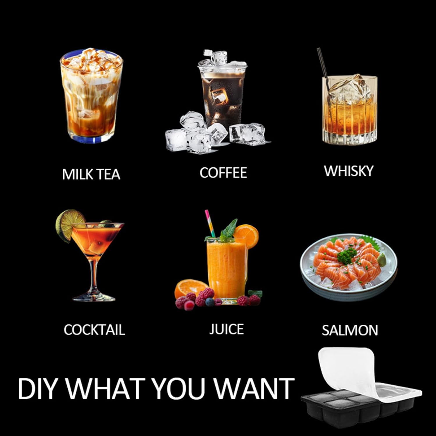 - UPGRADED SIZE LARGE WHISKEY ICE CUBES MOLD: Designed with 8 large molds, this ice tray creates 2-inch ice cubes, ideal for whiskey, bourbon, and cocktails. The slow-melting ice cubes keep your drinks cool longer, preserving the original flavor without dilution. A perfect choice for cocktail enthusiasts.