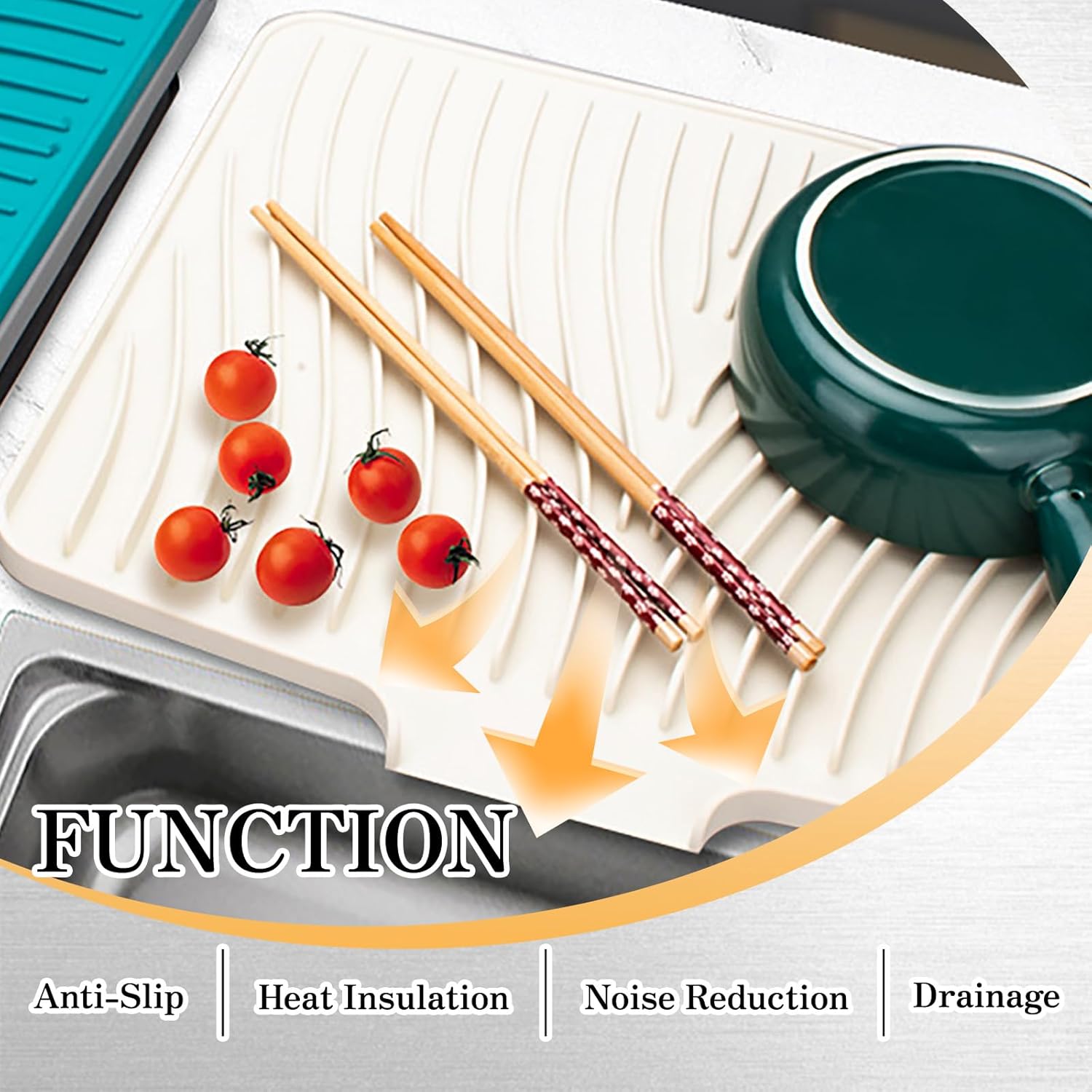 RoseFlower Dish Drying Mat, Large 15.7" x 13" Silicone Dish Mat Drying Kitchen Mat, Faucet Mat for Kitchen Sink, Dish Drying Mats for Kitchen Counter, Refrigerator or Drawer Liner - White
