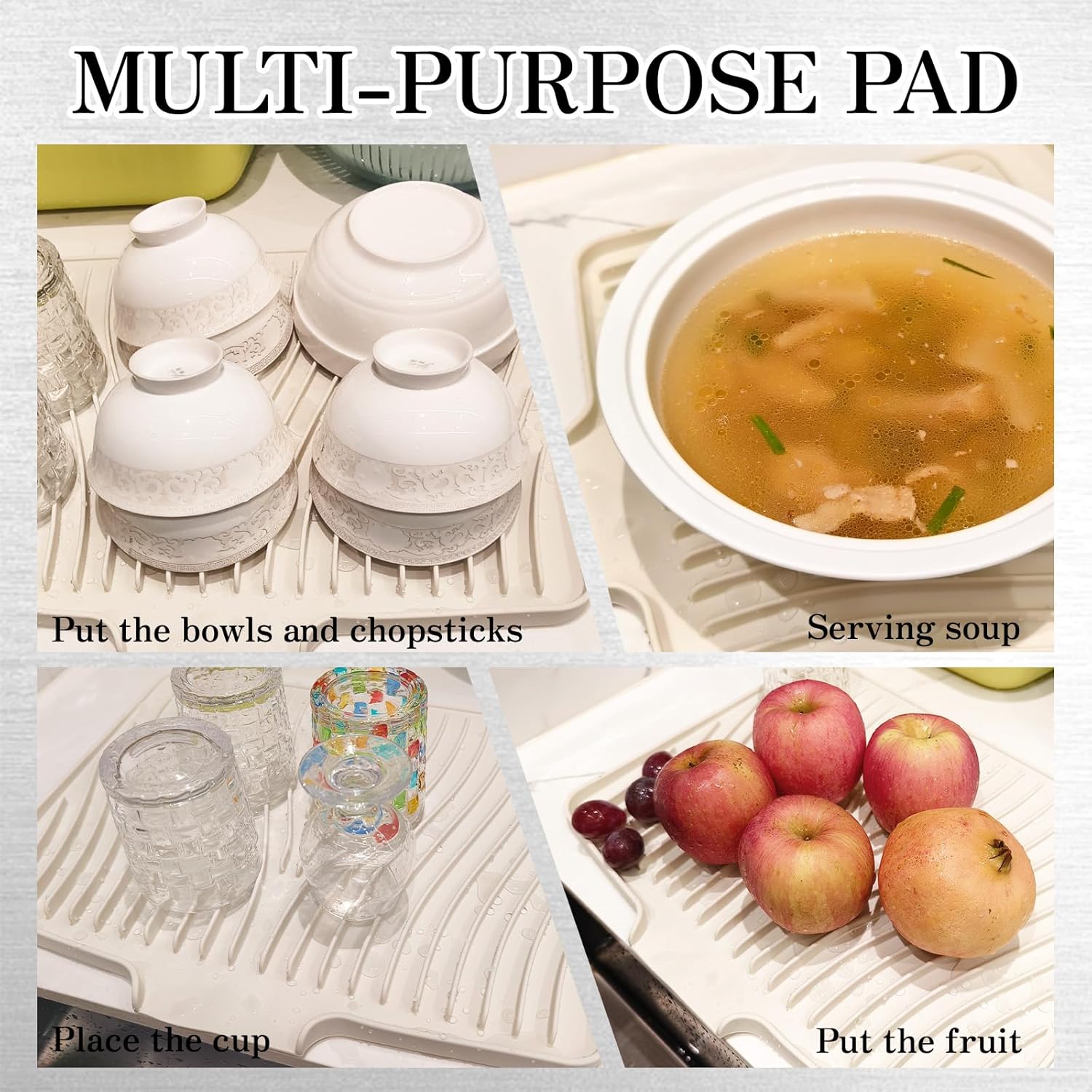 - 【Dish Drying Mats for Kitchen Counter】: Say goodbye to the unpleasant odors caused by traditional dish towels. After washing your dishes, inverting them on RoseFlower dish drying mats for kitchen counter can help quickly dry your dishes without worrying about water spilling out. The edges of RoseFlower drying mat are raised, ensuring that water will not overflow. These mats will become excellent kitchen accessories.