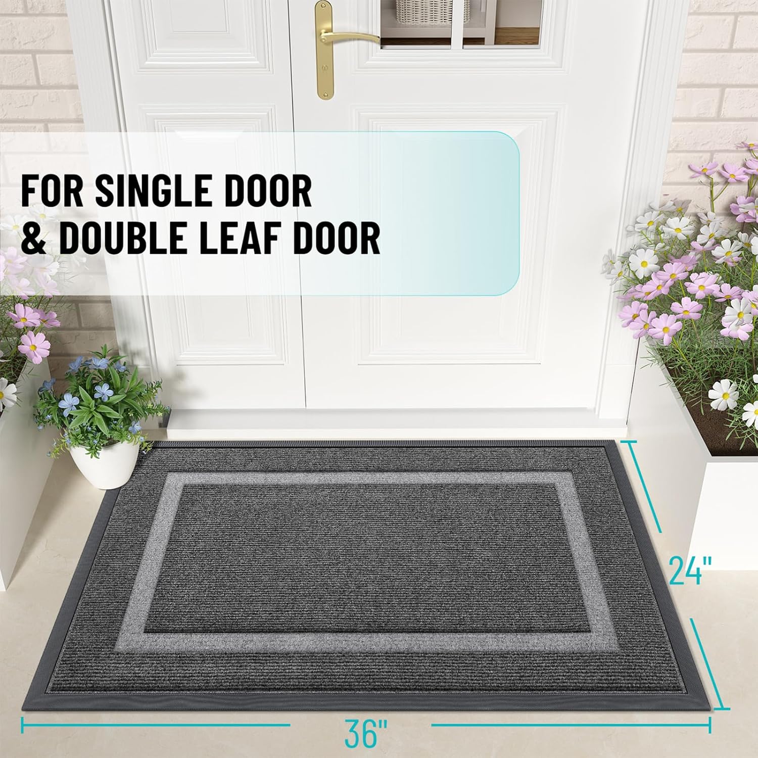 OLANLY Front Door Mat Indoor Outdoor Entrance, Waterproof All-Season, All-Weather Doormat, Sturdy Natural Rubber, Fade Resistant, Low Profile, Easy Clean Patio Porch Entryway Mat, 35x23, Dark Grey