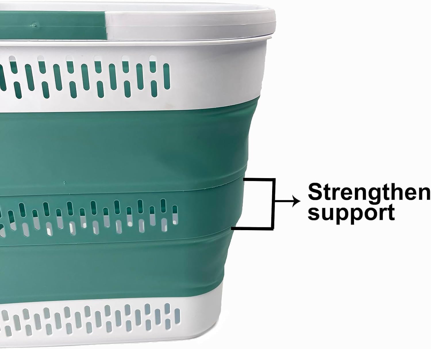 SAMMART 40L (10.5 Gallon) Collapsible Plastic Laundry Basket with Handles - Foldable Pop Up Storage Container/Organizer - Portable Laundry Hamper - Space Saving (1, White/Celadon Green)