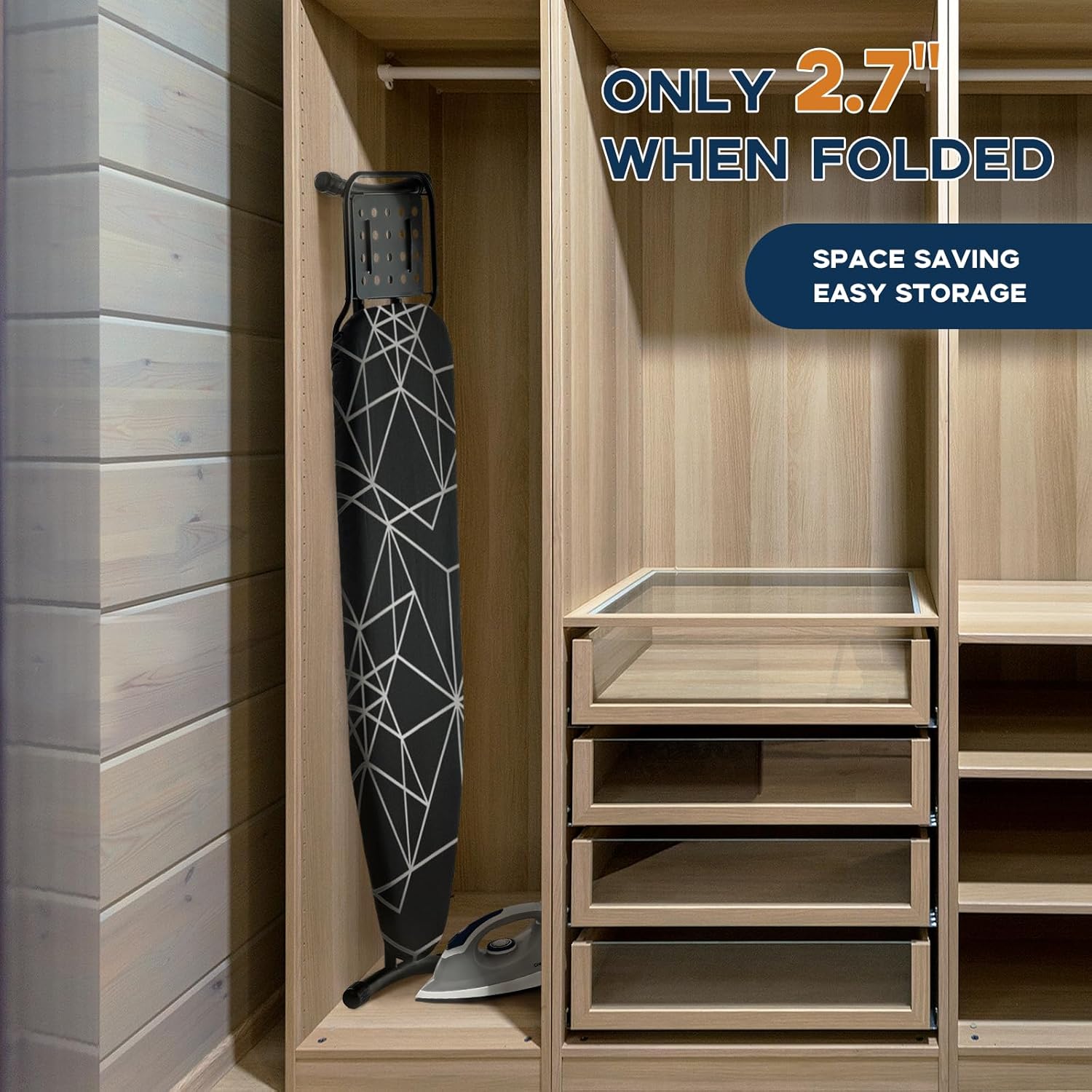 Ironing Board 43x13, Compact Iron Board Full Size with Heavy Duty Iron Rest, Thick Padded Cover, Adjustable Height, Sturdy Lightweight Steel Legs, Black