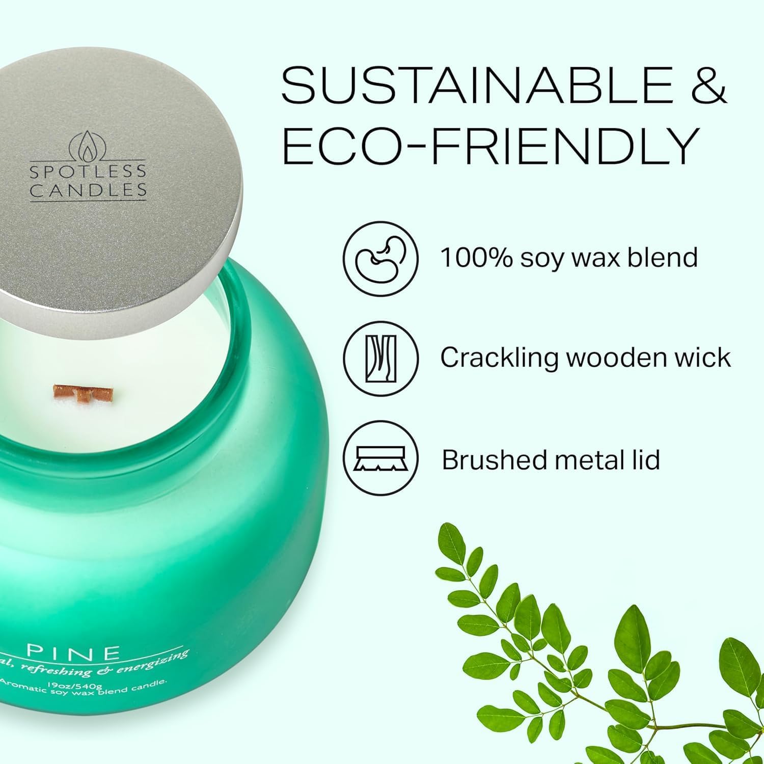 - FRESH & INVIGORATING FRAGRANCE - Imagine calming mountain forests when you experience the heady pine aromas of our luxury Pine Candles. This large scented candle is non toxic with a crackling wick & scent throw that is invigorating & soothing