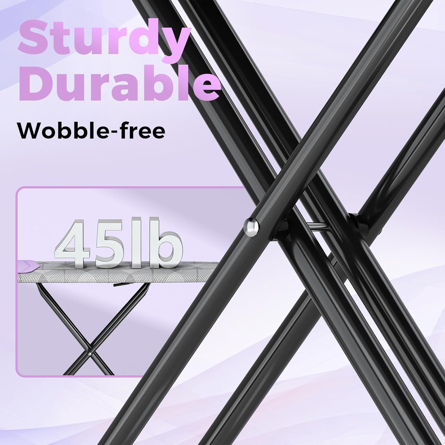 - Breathable Extra-Wide Panel: This ironing board features a spacious surface with dimensions of 13x43 inch, large enough to lay out various types of clothing, generously sized top allows for efficient and effective ironing, saving you time and effort. Mesh design make ironing stand dissipates heat quickly, allowing you to easily achieve a smooth and flat ironing effect