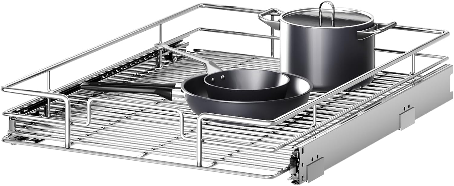 - 【Efficient Kitchen Organizer】Features a full-extension ball-bearing system which slides smoothly; Durable and strong organizer that can hold up to 50-pounds of weight.