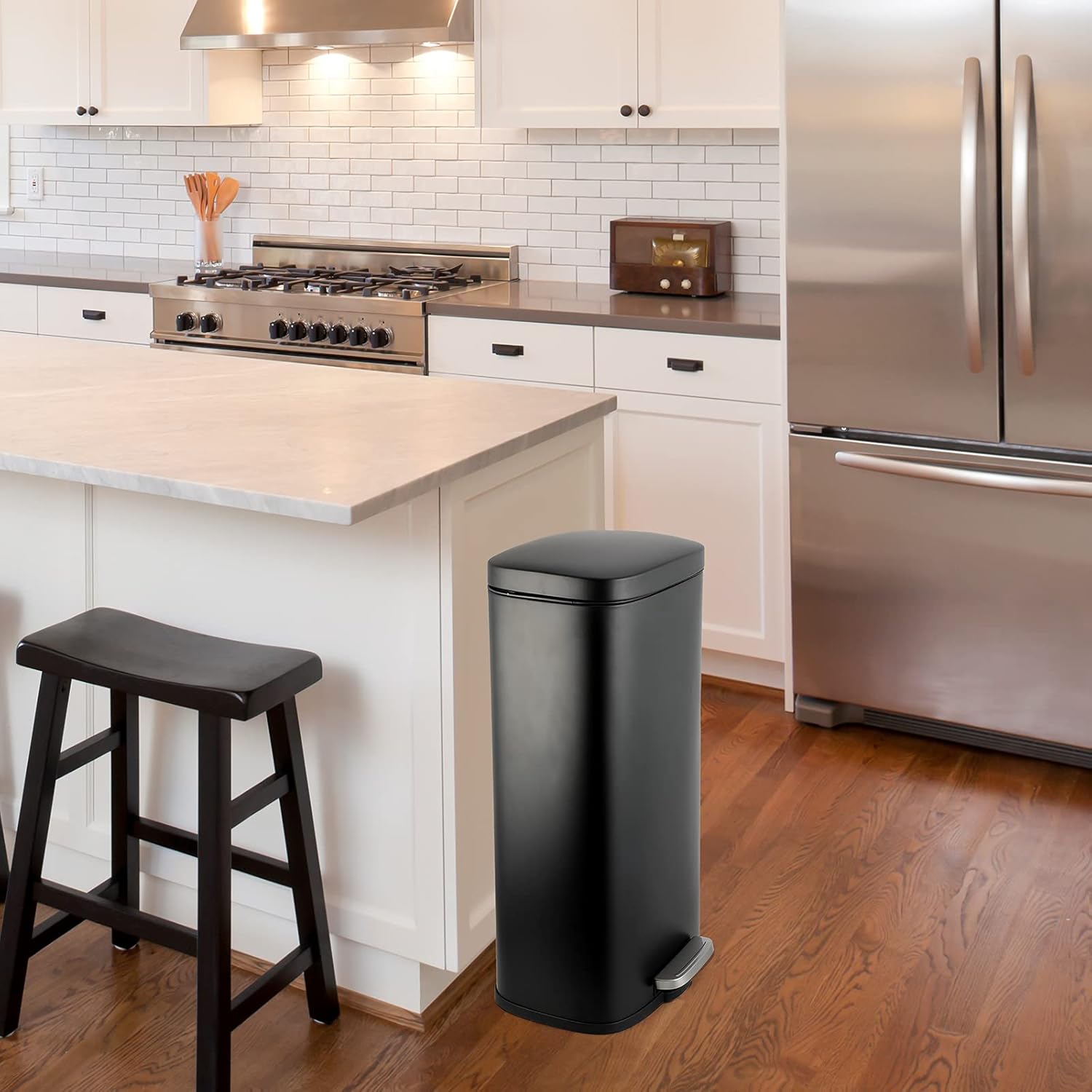 AthLike Trash Can, Stainless Steel Kitchen Garbage Can, Step Waste Bin with Hinged Lid and Removable Inner Bucket, Soft-Close, Dustbin for Bathroom Bedroom Living Room Home (Black, 13.2 Gal)