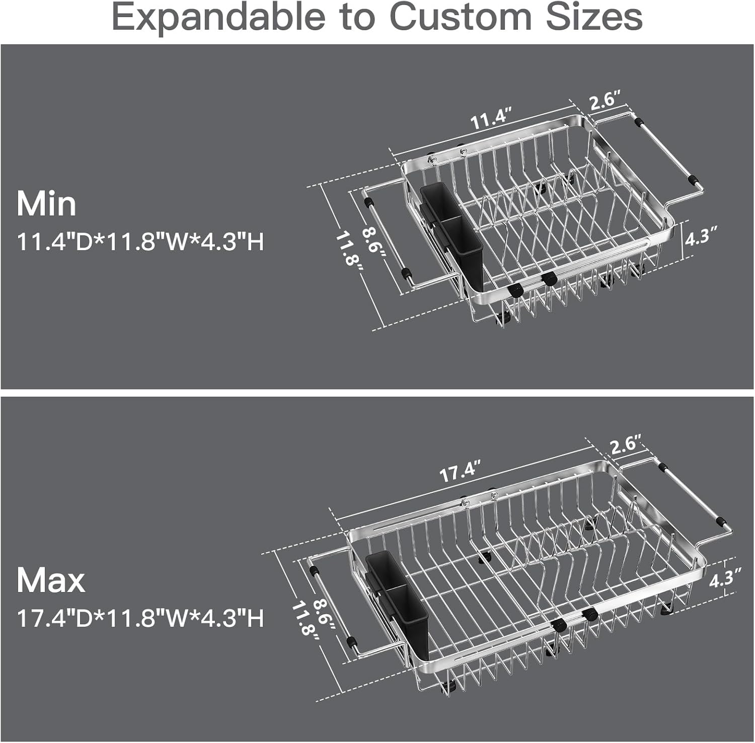 - 🔄 Expandable & Adaptable: Slide to customize this expandable dish drying rack for single/double sinks. Perfect space saving dish drying rack solution for tight spaces