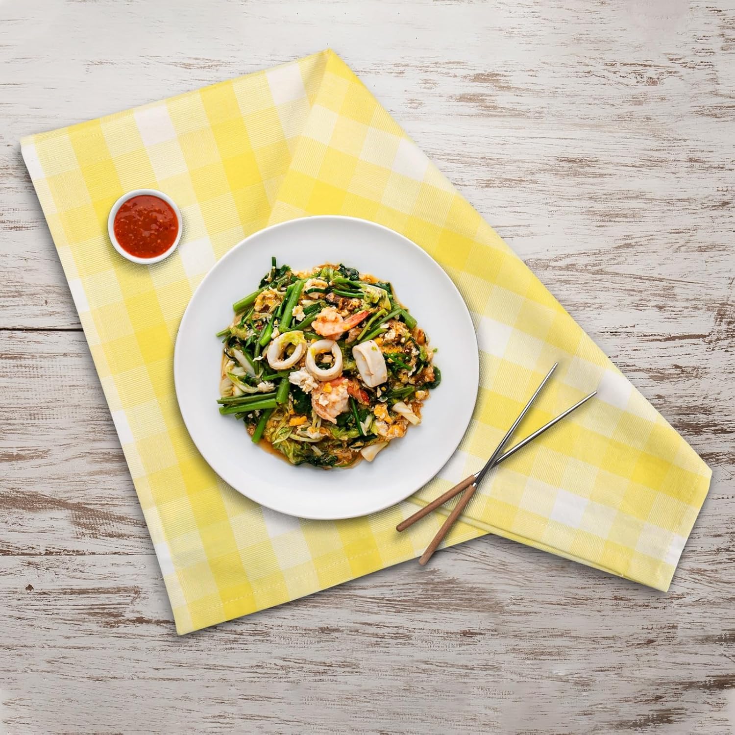 Kitchen Towels Set of 6 Yellow/White Checks 20x30 Inches 100% Cotton Highly Absorbent Kitchen Towels Premium Quality Ultra Soft Mitered Corners