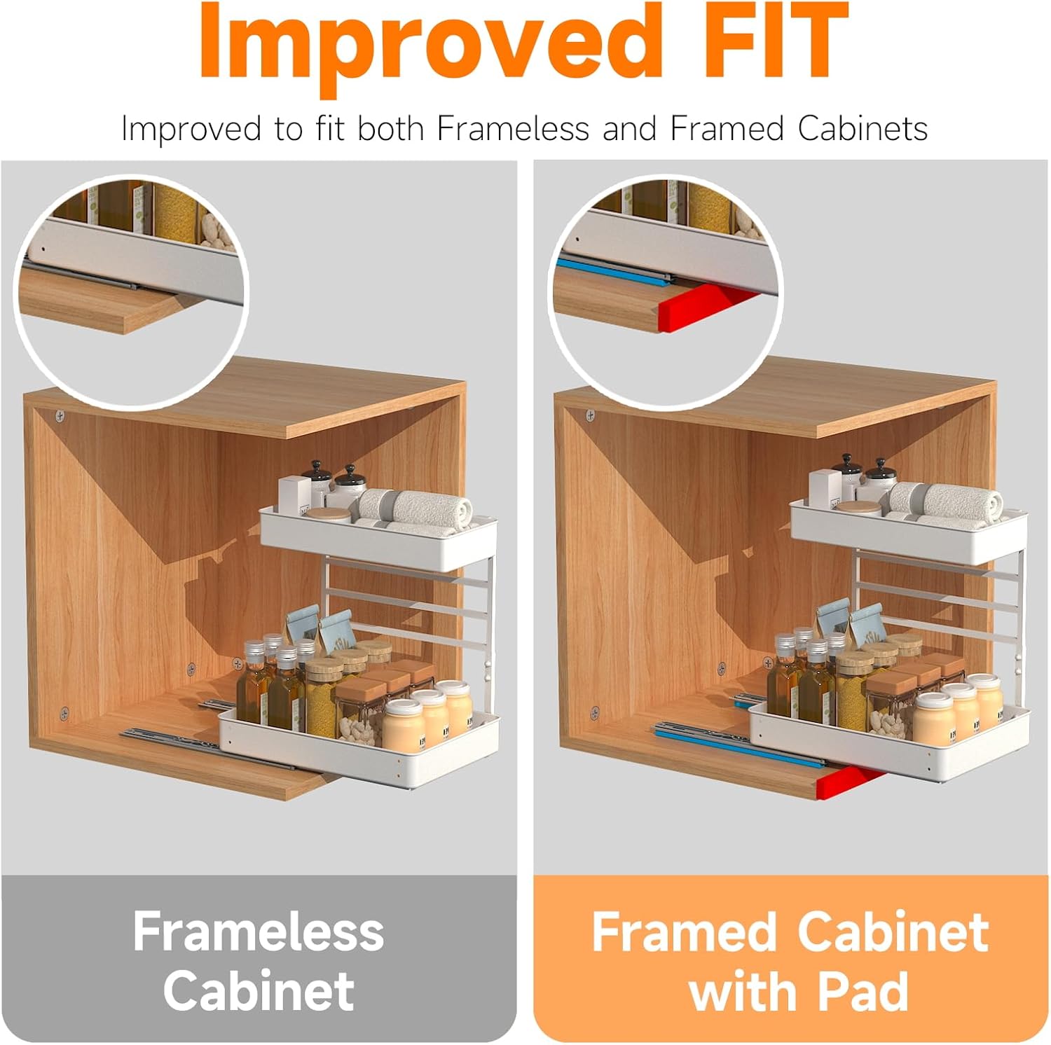 EVERIE Metal Pull Out Slide Shelf Organizer for Framed or Frameless Under Sink CabinetsOrganization in Kitchen, Bathroom, Counter, Cabinets (White, 1 Set)