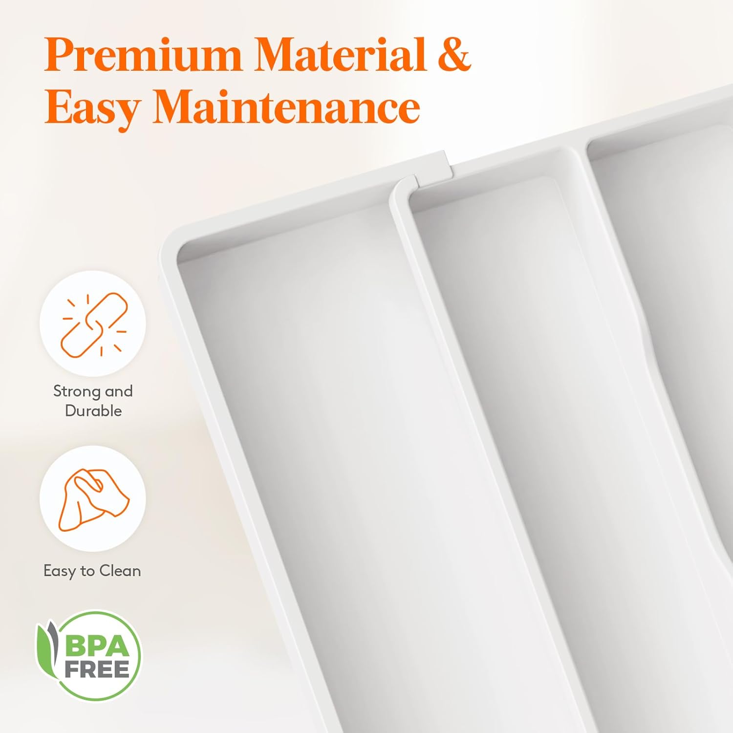 Lifewit Silverware Drawer Organizer and Utensil Organizer Set, Expandable Cooking Cutlery Tray for Kitchen, Adjustable Plastic Flatware Holder Storage Divider for Spoons Forks Knives, Large, White