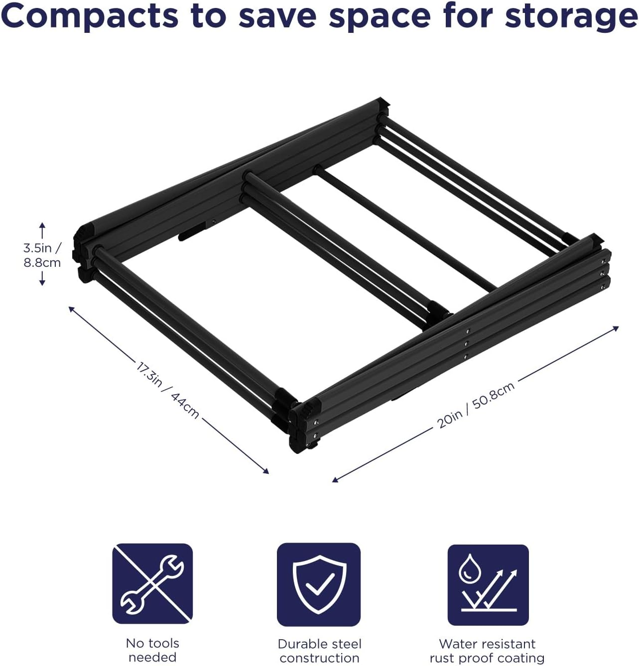 - READY TO USE: No tools are required to assemble, accordion design drops open and locks into place. Stable structure so it would not collapse while using. Can bear the weight of hanging items.