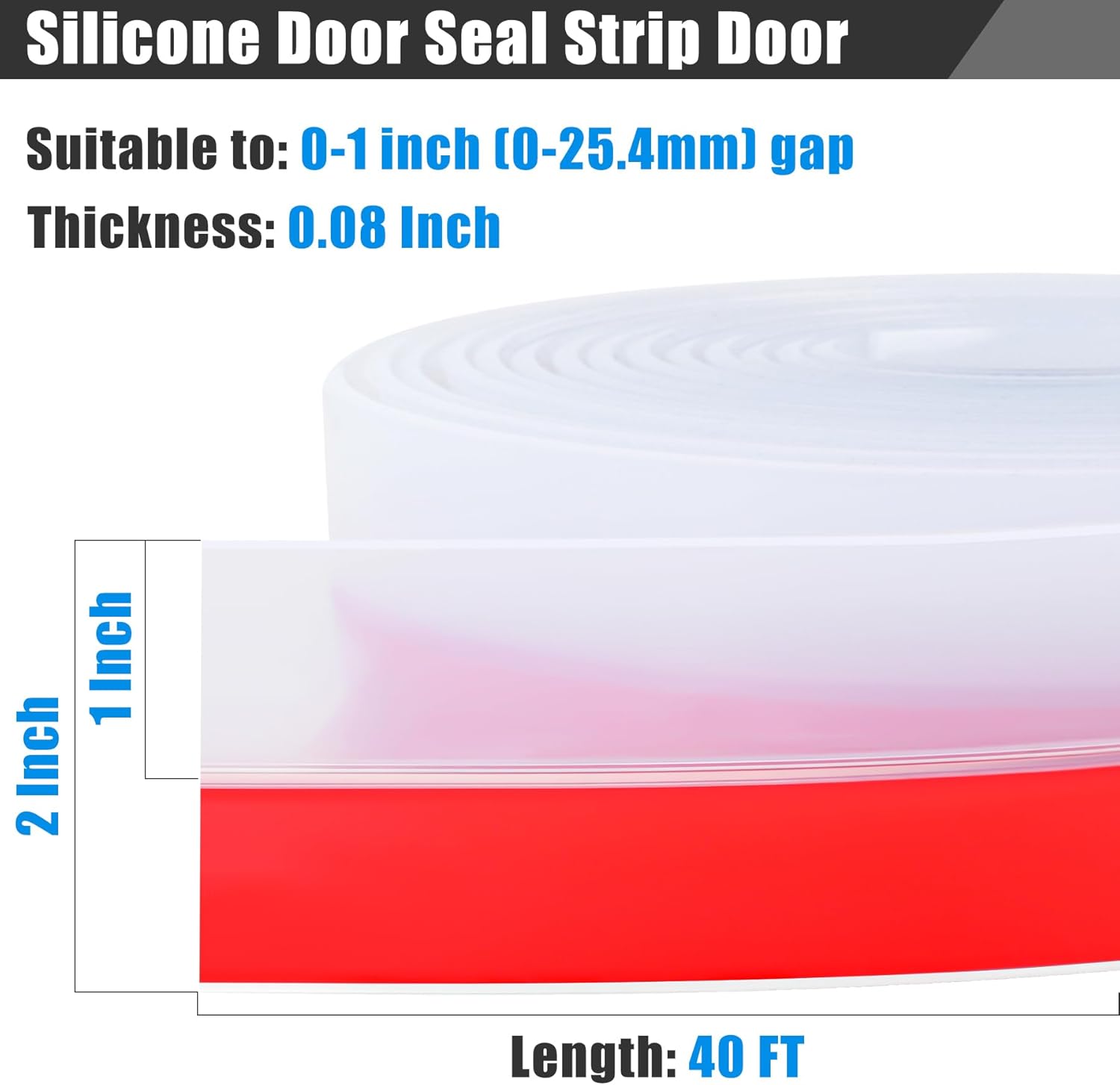- 【Silicone Seal Strip】The window sealing strip is 40ft length and can be cut to your needs. Width: 2in/51mm, thickness: 0.08in/2mm, back glue width: 1in/25.5mm, suitable to: 0-1in (0-25.4mm) gap