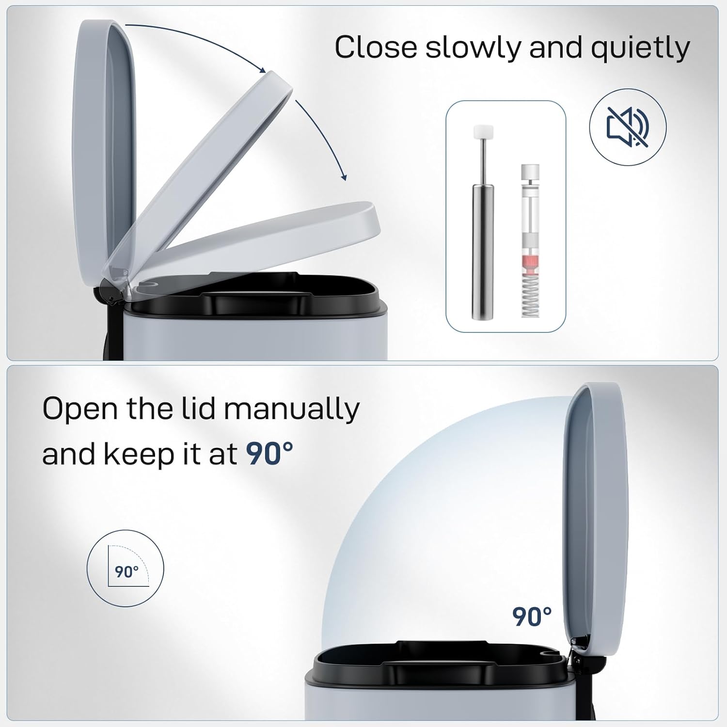 - 【WON'T DISTURB YOU】Using ABS hydraulic deceleration technology, the trash can lid can be slowly and gently closed when the pedal is released, without making a lot of noise, and it will not disturb your family when disposing of garbage.