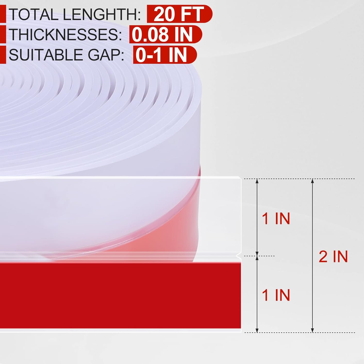 MYFAMIREA Door Weather Stripping 2IN (W) x 20FT (L) Door Draft Stopper Seal Tape Silicone Seal Strip Self Adhesive Shower Sweep Insulation Tape Side Bottom Strip for Sliding Glass Window Gap, Clear