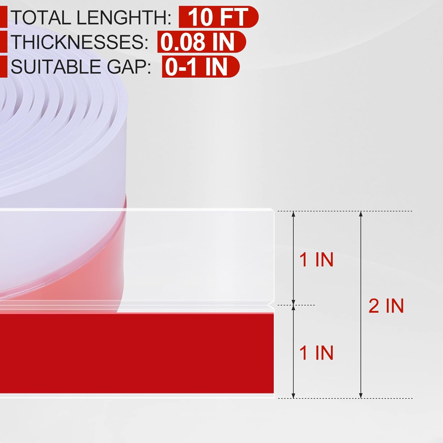 MYFAMIREA Door Weather Stripping 2IN (W) x 10FT (L) Door Draft Stopper Seal Tape Silicone Seal Strip Self Adhesive Shower Sweep Insulation Tape Side Bottom Strip for Sliding Glass Window Gap, Clear