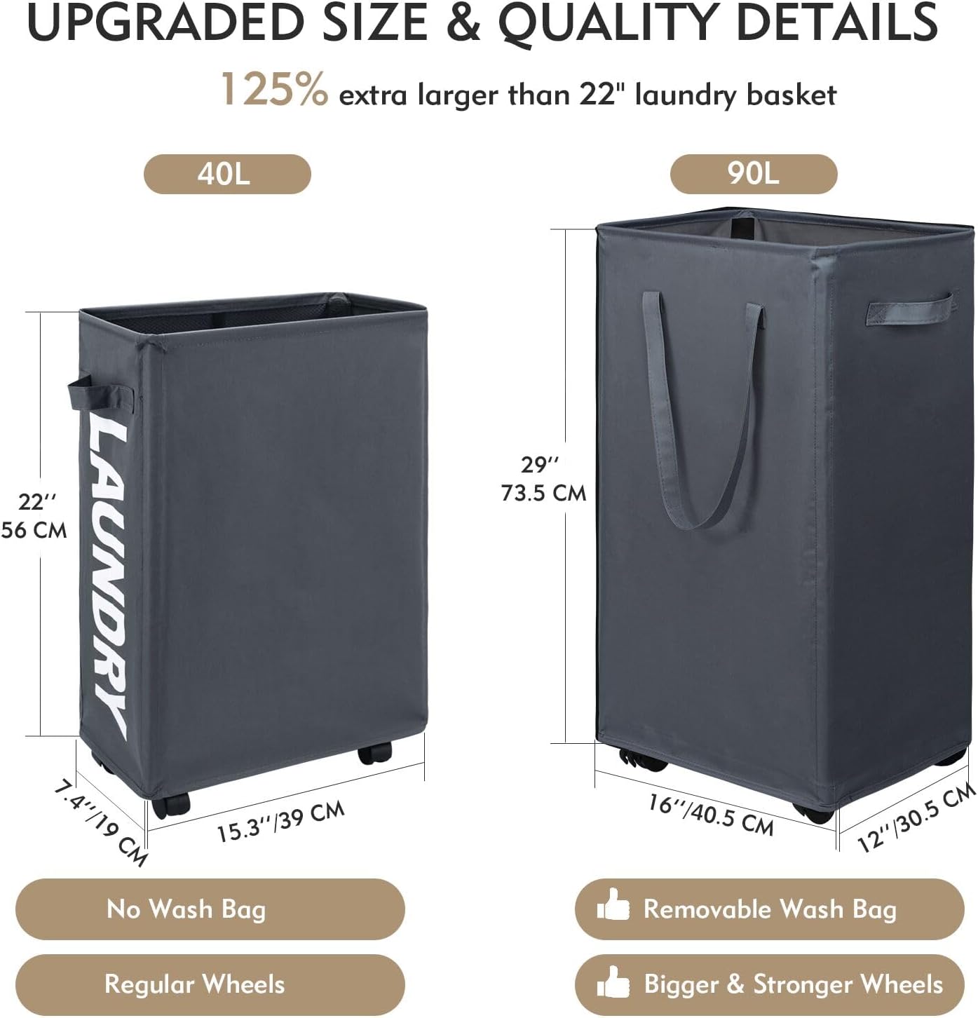 DOKEHOM 90L X-Large Laundry Basket with Removable Wash Bag on Wheels, Collapsible Rolling Laundry Hamper, Foldable Clothes Organizer, Folding Washing Bin (Grey)