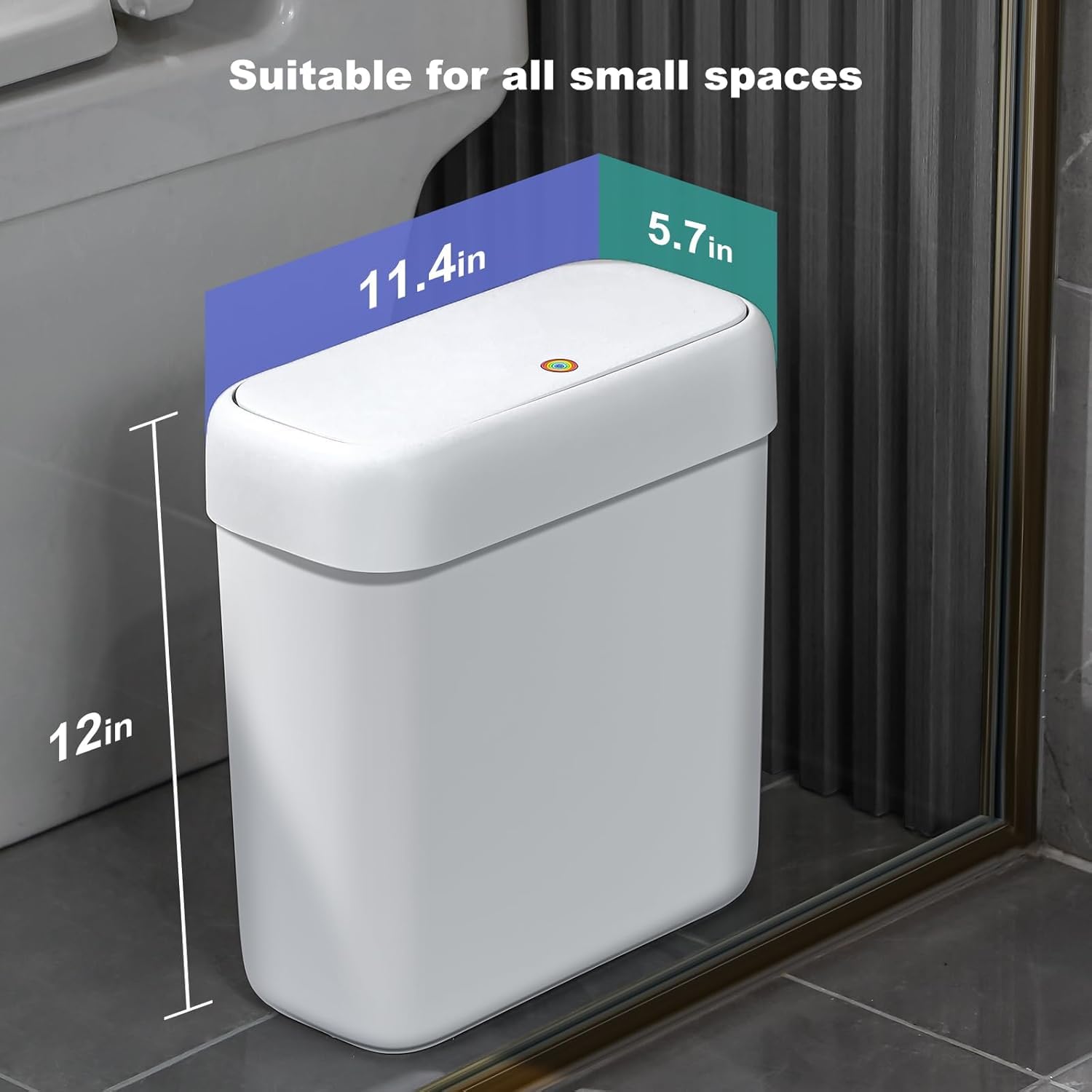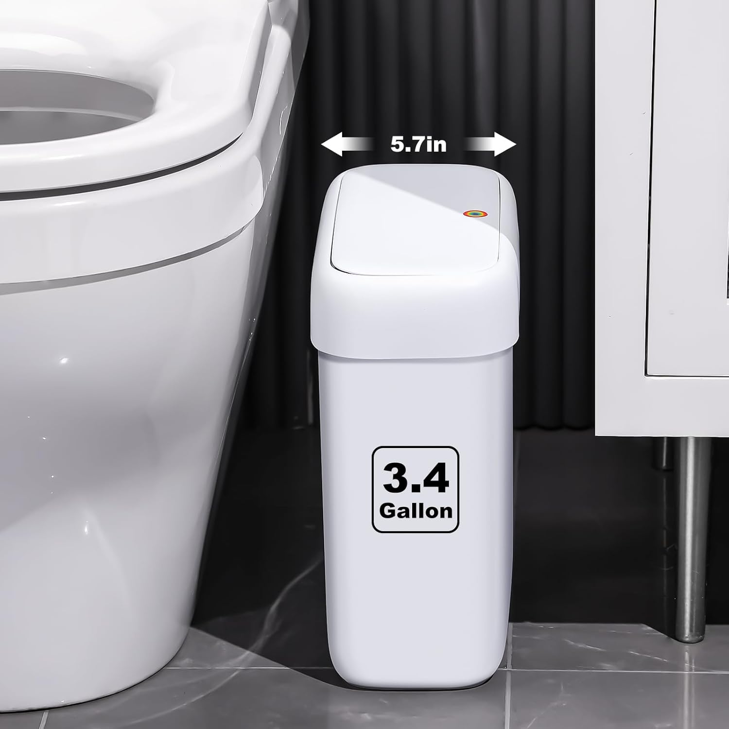 funest Bathroom Small Trash Can with Lid, 13 Liter/3.4 Gallon Slim Garbage Bin with Press Top Lid, White Wastebasket for Bedroom, Office, Kitchen, RV