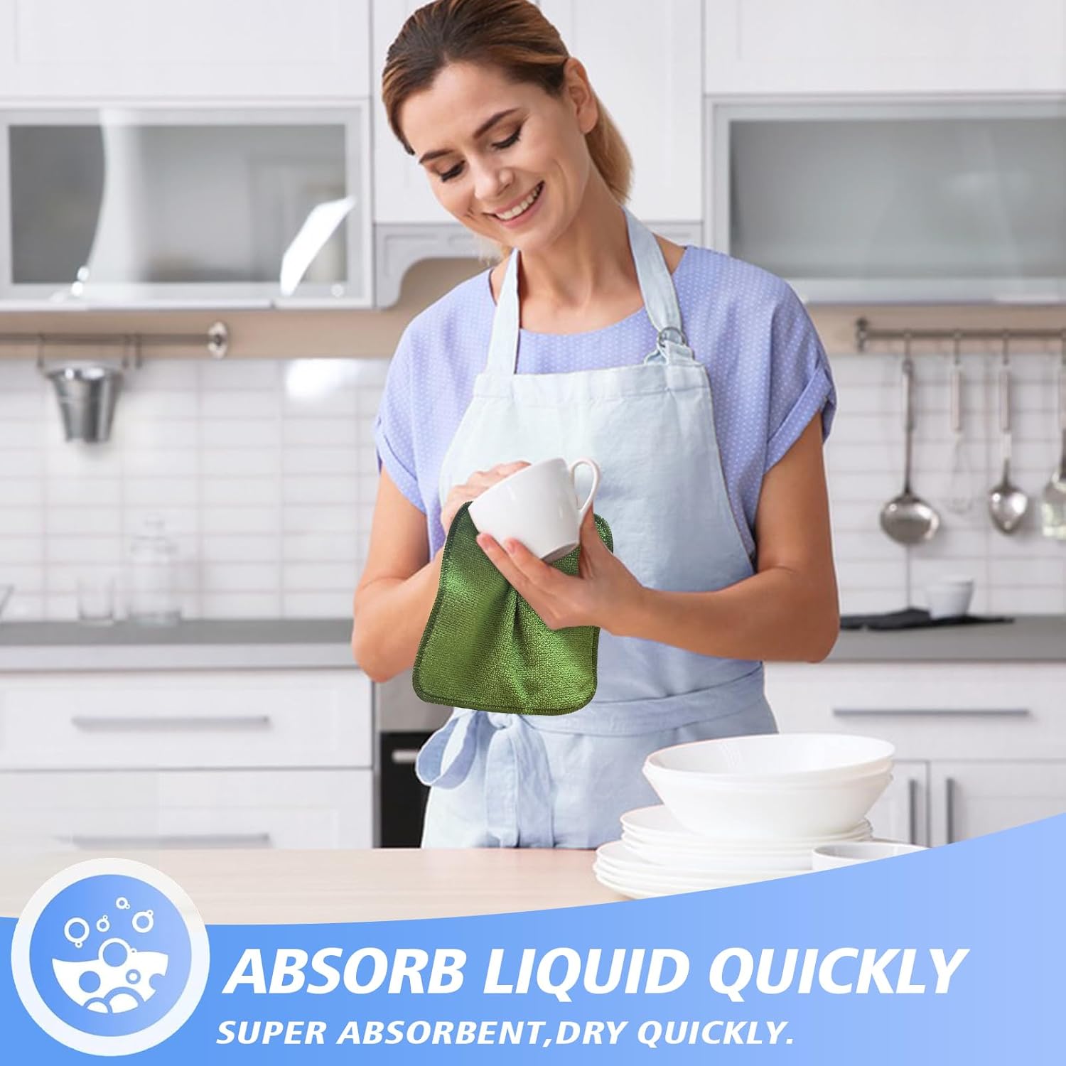 - ABSORB LIQUID QUICKLY WASHCLOTH FOR KITCHEN: These dish cloths are super absorbent, dry quickly, and any stains or grime from wiping counters washes right out with warm sopy water. Works well for buffing hard water spots from wet dishes