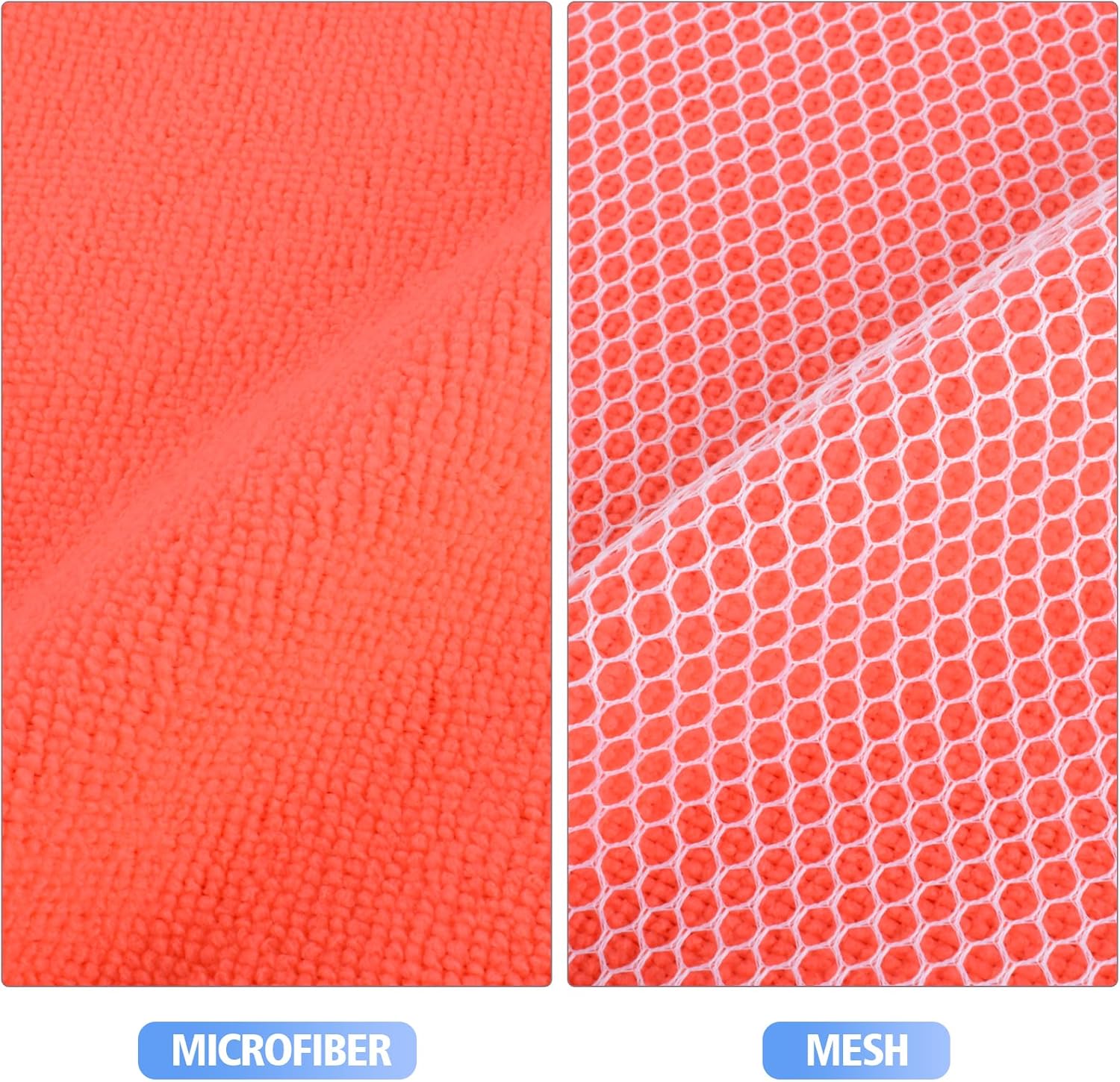 - DISH RAGS FOR KITCHEN CLEANING WITH POLY SCOUR SCRUBBING SIDE: One side is microfiber and the other side is mesh. The microfiber side works well at getting finger spots off the stainless steel appliances and the glass front of fridge or stove, microwave; the scrubby side is good for cleaning stuck on food without having to grab your scraper and does not scratch delicate surfaces either