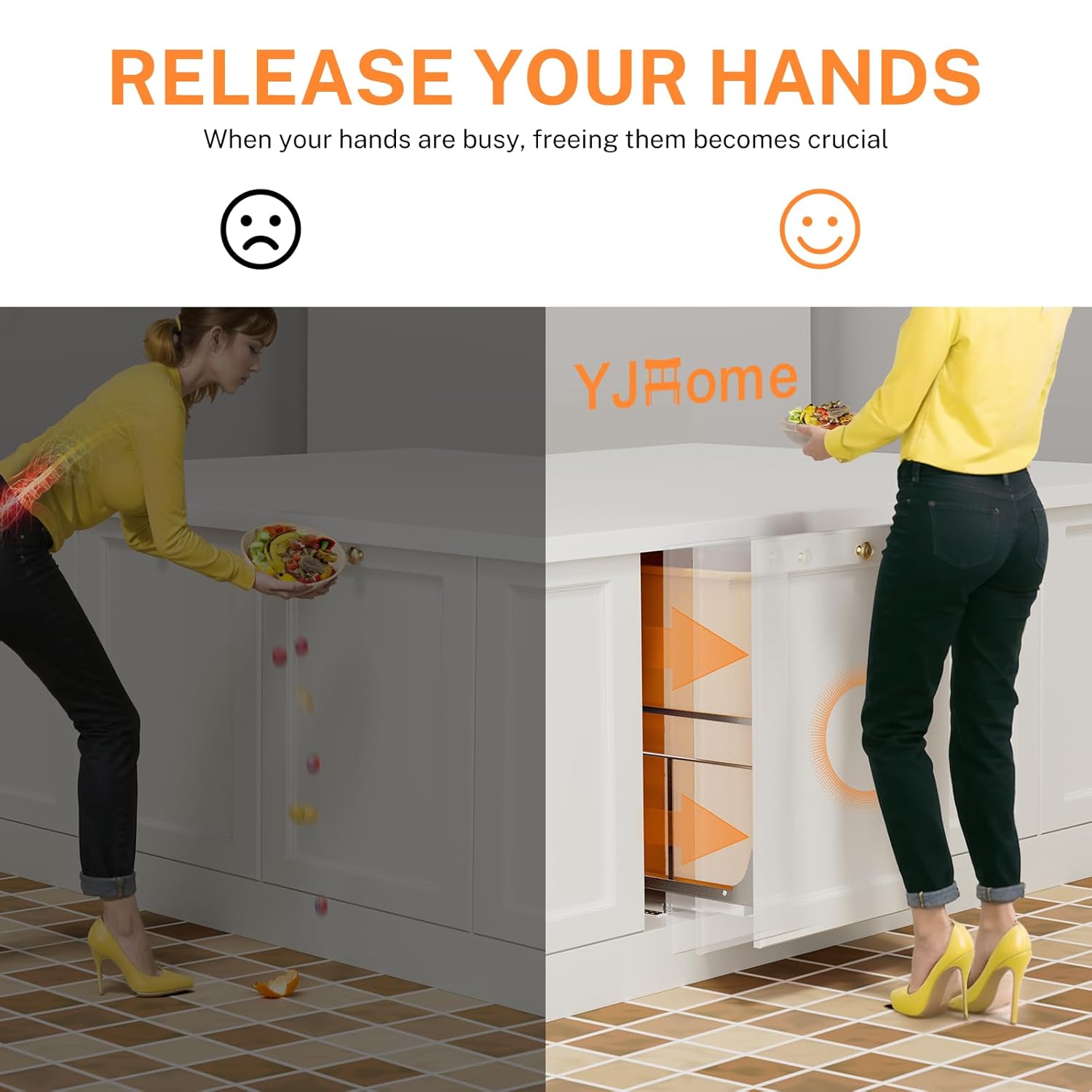 - Space Saving Pull Out Trash Can: YJHome pull out trash can under cabinet conceals your kitchen bin beneath cabinets or the sink, saving valuable space. Note: Without Garbage Can, Without Cabinet. The screws provided for attaching to the cabinet door are 12mm in length. Please measure the thickness of your cabinet door first to ensure the screws do not penetrate through!