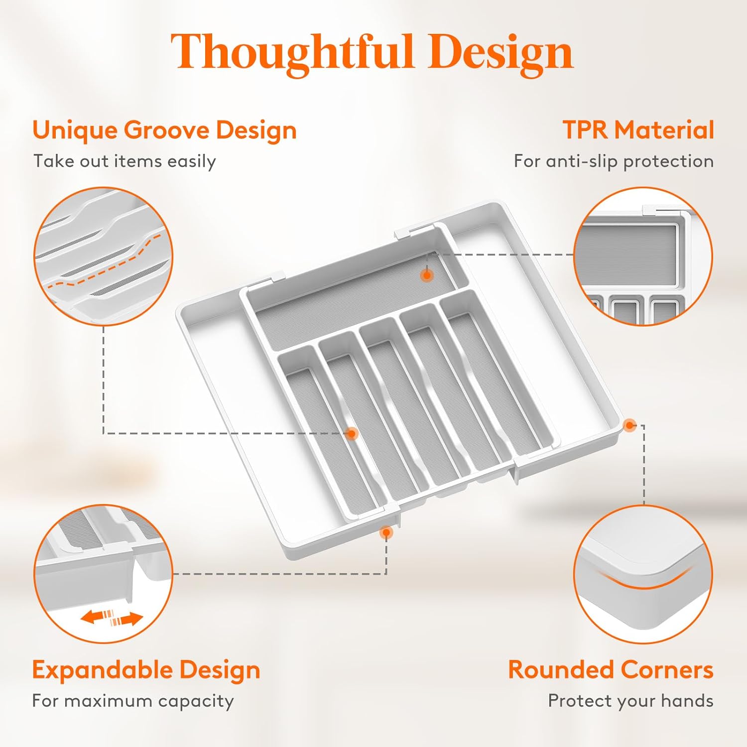 - Anti-Slip Protection: The middle six compartments of this kitchen drawer organizer are lined with soft yet non-slip TPR to prevent damage to your silverware during drawer pulls, offering excellent protection for your silverware