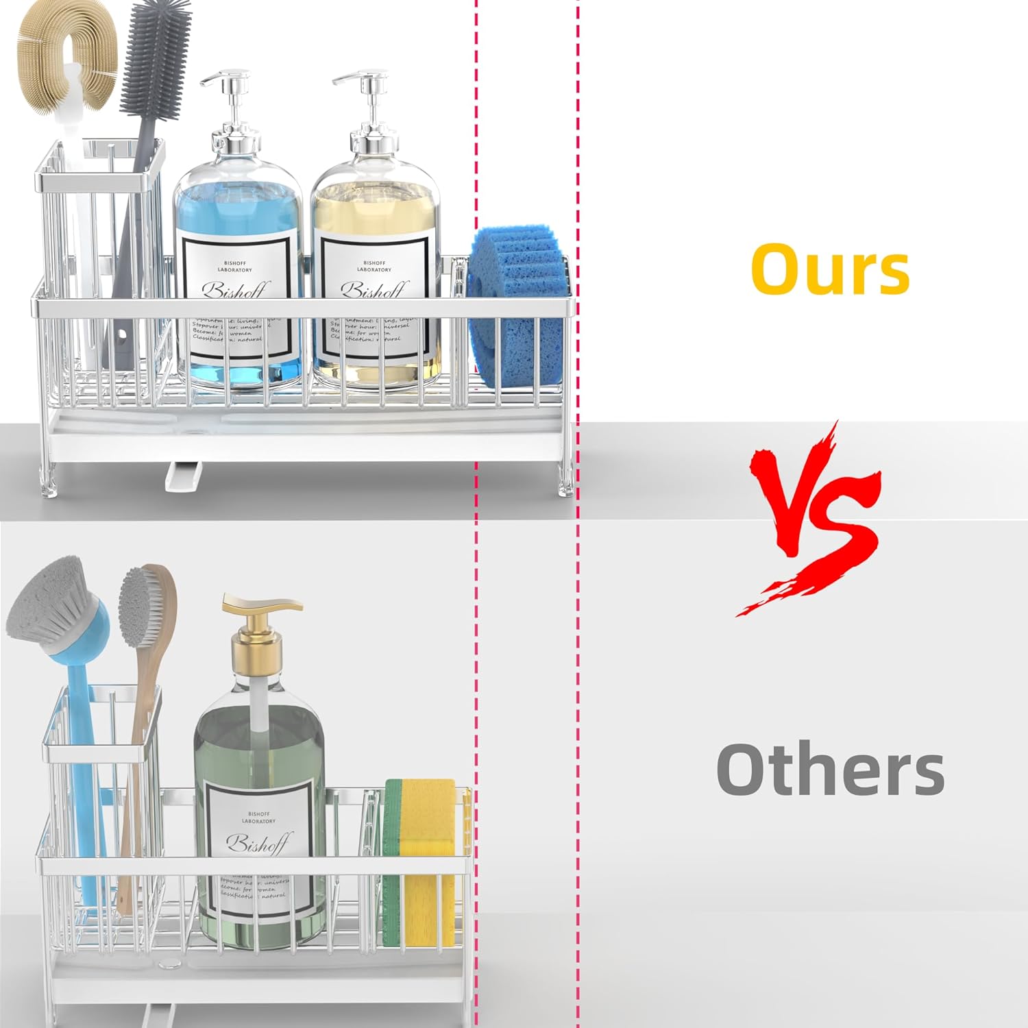 - ăHIGH-QUALITY AND STURDY MATERIALăMoforoco kitchen sink organizer is made of high-quality stainless steel, which can effectively prevent rust and deformation. You can rinse under the faucet and clean it easily. Clear the debris on the countertop.