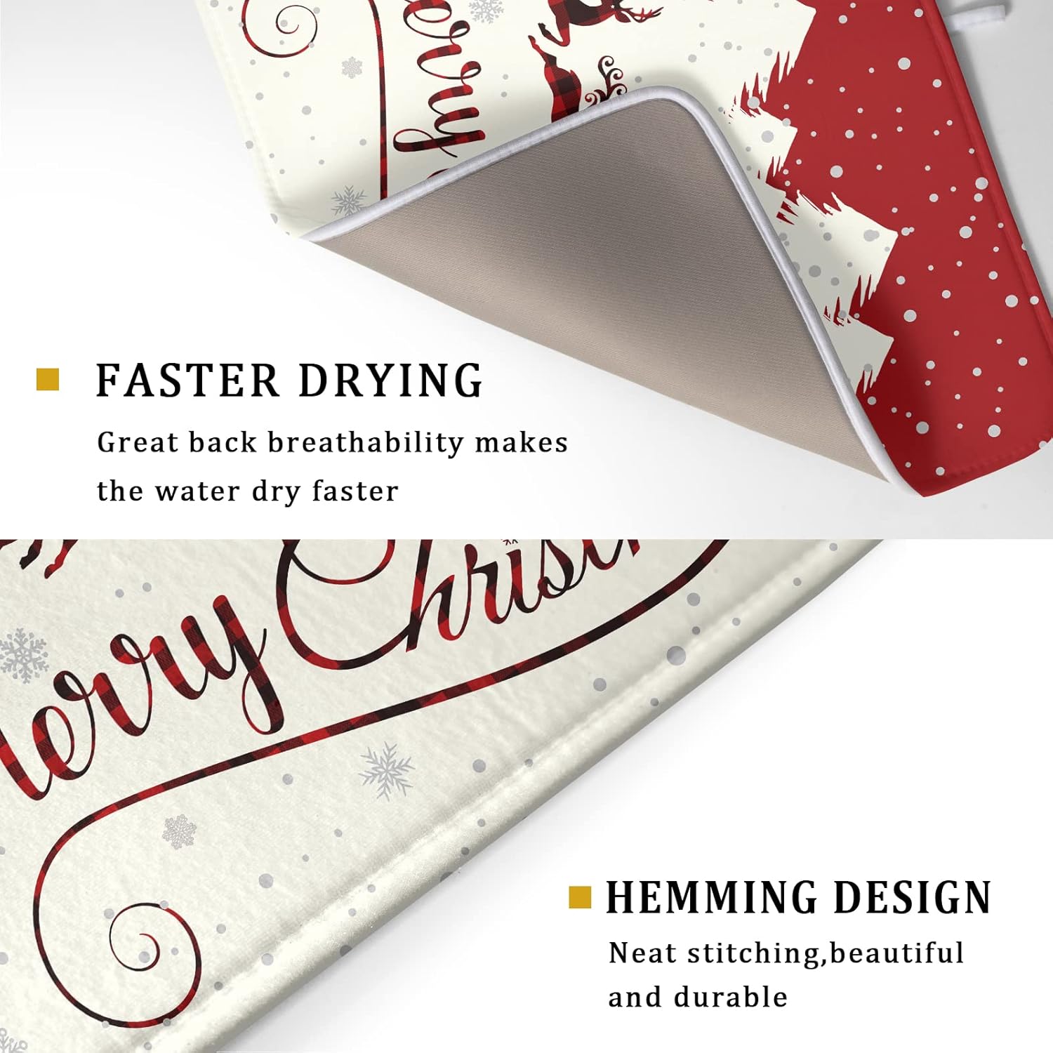 Christmas Moose Dish Drying Mat 16x18 Inch Cute Christmas Elk Drying Mat for Kitchen Counter Xmas Winter Santa Claus Absorbent Reversible Microfiber Dishes Pad Dish Drainer Mats Kitchen Accessories