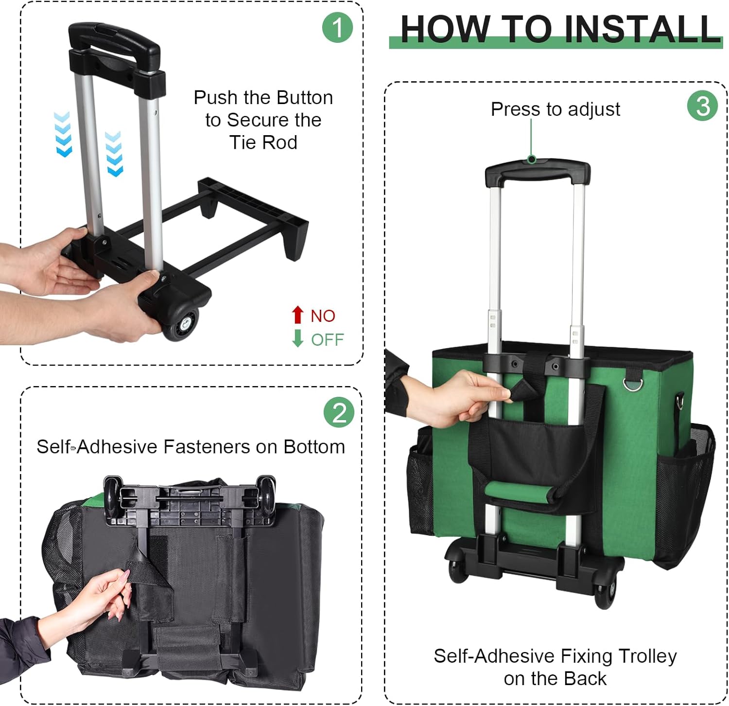 Large Rolling Cleaning Caddy Bag with Wheels, Cleaning Bag with Detachable Trolley, Cleaning Bags on Wheels for Housekeepers, Cleaning Cart Supplies Organizer for Home, Car, Picnic (Green)