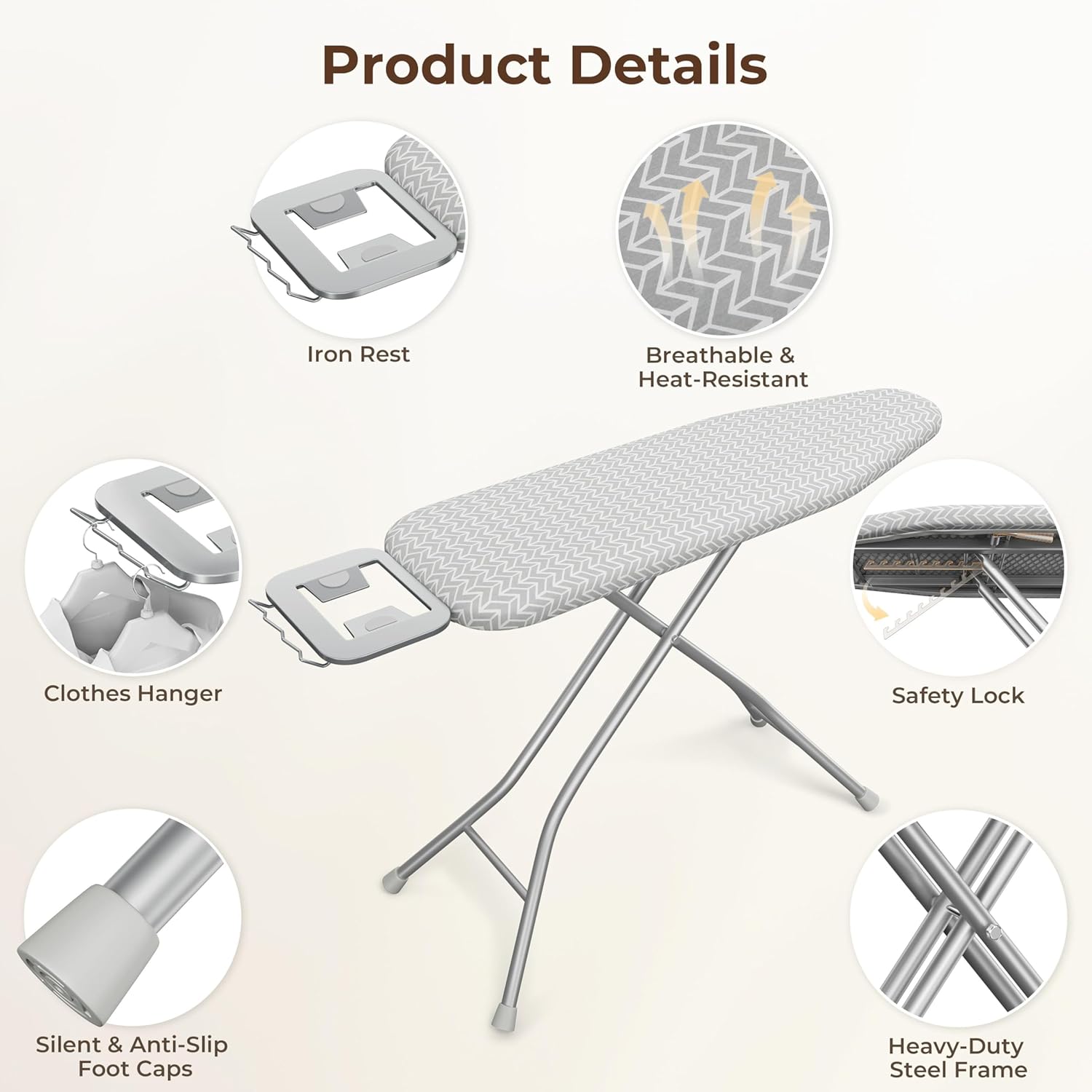 - Spacious Ironing Surface: This full-size iron board with a 43β³ L Γ 14β³ W surface offers ample space for ironing various garments and sewing, providing a smooth working experience to fulfill all your needs