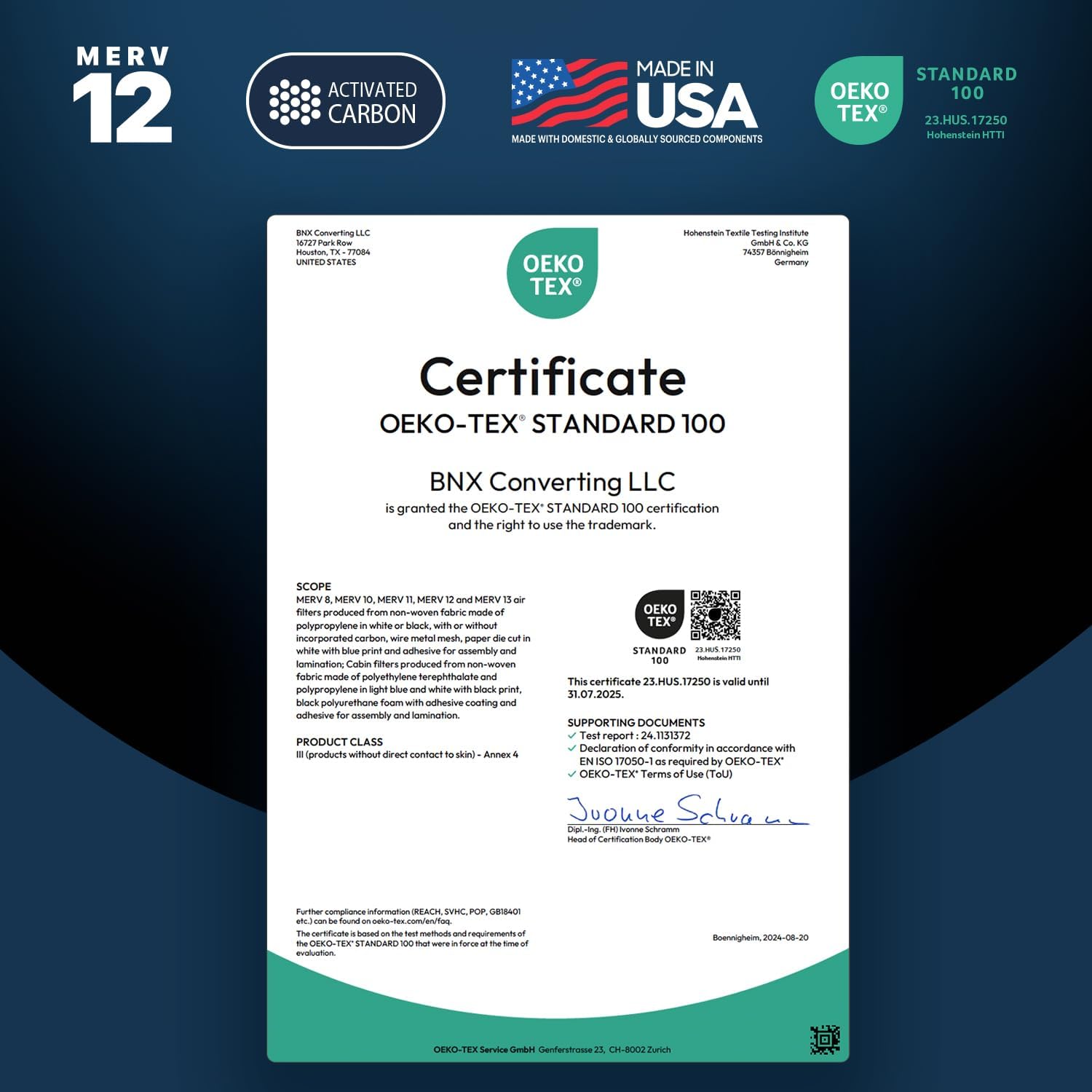 - CAPTURES MICROSCOPIC PARTICLES - The BNX air filter has a MERV 12 rating allowing it to capture 93% of microscopic airborne particles (3-10 um) without impacting air flow. Captures microscopic particles such as bacteria, odors, smoke, and pollen, pet dander, allergens, dust, lint, mold, dust mites, smog. Noticeably cleaner air in 48 hours.