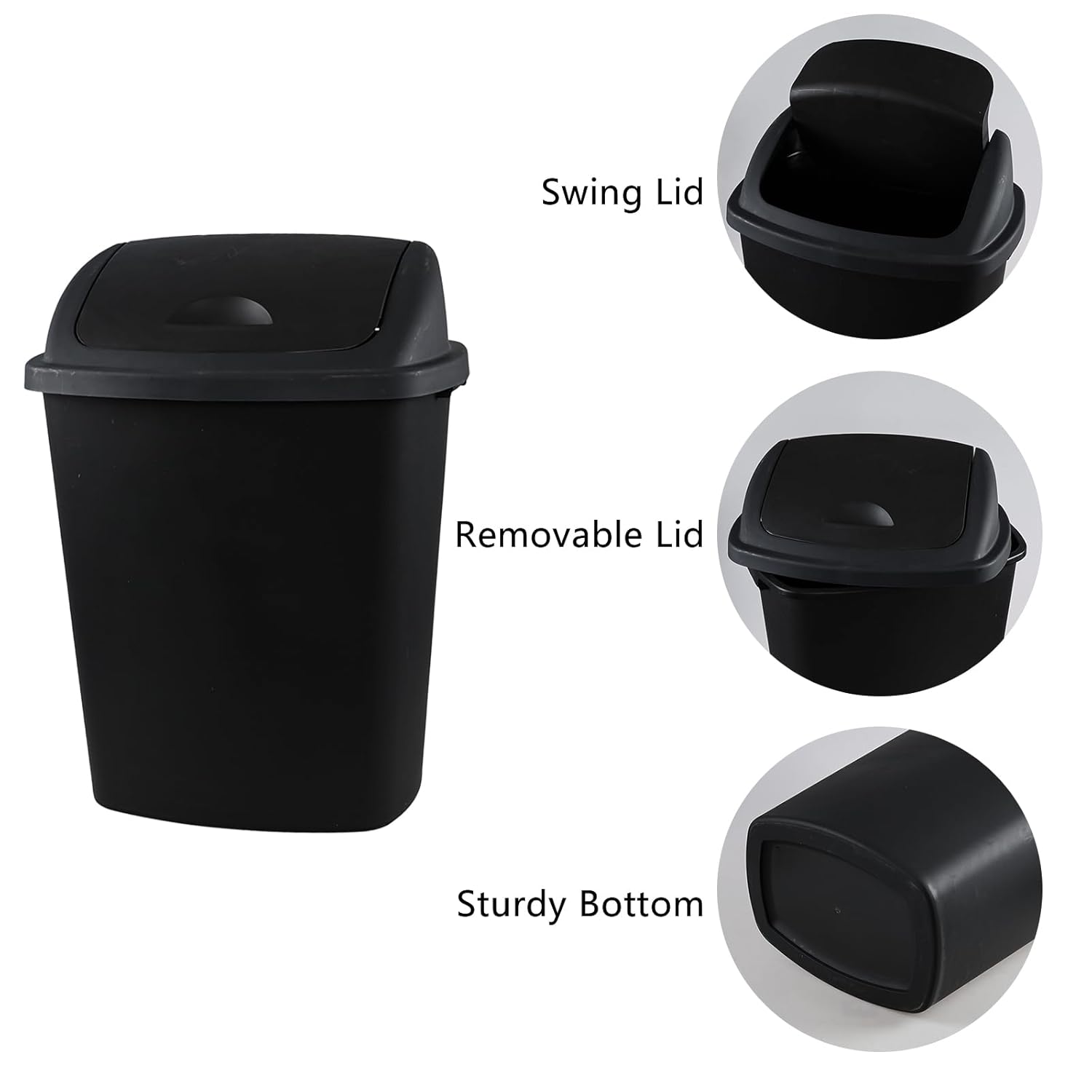 18 Gallon Plastic Garbage Bin with Swing Lid, Set of 4 Large Trash Can, Black