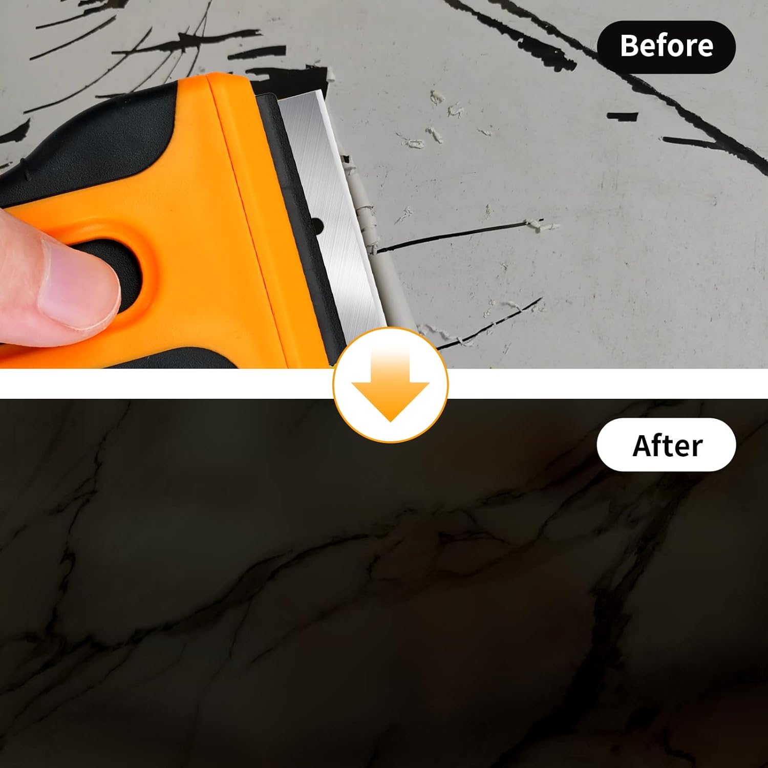 - MULTI-PURPOSE SCRAPER TOOL FOR VARIOUS SURFACES:Effectively removes paint, stickers, glue, labels, and adhesives from glass, windows, tiles, and metal. Ideal for home improvement, automotive cleaning, and office maintenance tasks