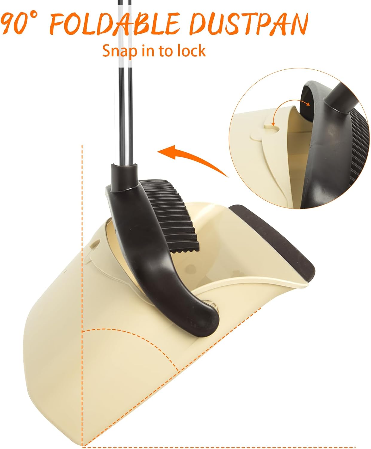 - 【Foldable Dustpan & Clip Design】The collapsible dustpan and sturdy buckle design are standout features of this broom and dustpan set. After sweeping, simply secure the broom to the dustpan clasp and fold the dustpan for upright storage. This compact design not only saves storage space but also effectively prevents debris from spilling out. This design not only makes the usage process more convenient but also solves storage woes. Whether you hang it on the wall or place it in a corner, it stays steady.
