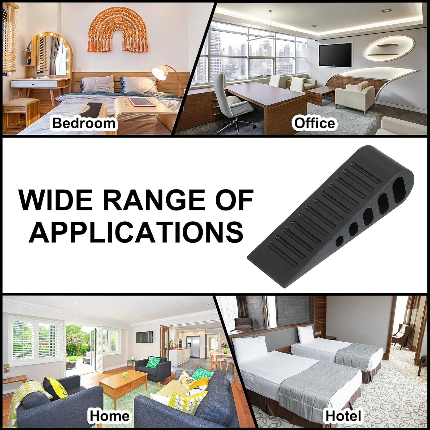 - Silent & Convenient Storage: With a unique wedge-sloped design, these rubber door stops offer excellent grip without scratching floors, walls, or doors. They provide effective noise reduction and come with a self-adhesive holder for easy hanging and storage, keeping your space organized and the doorstop readily accessible.